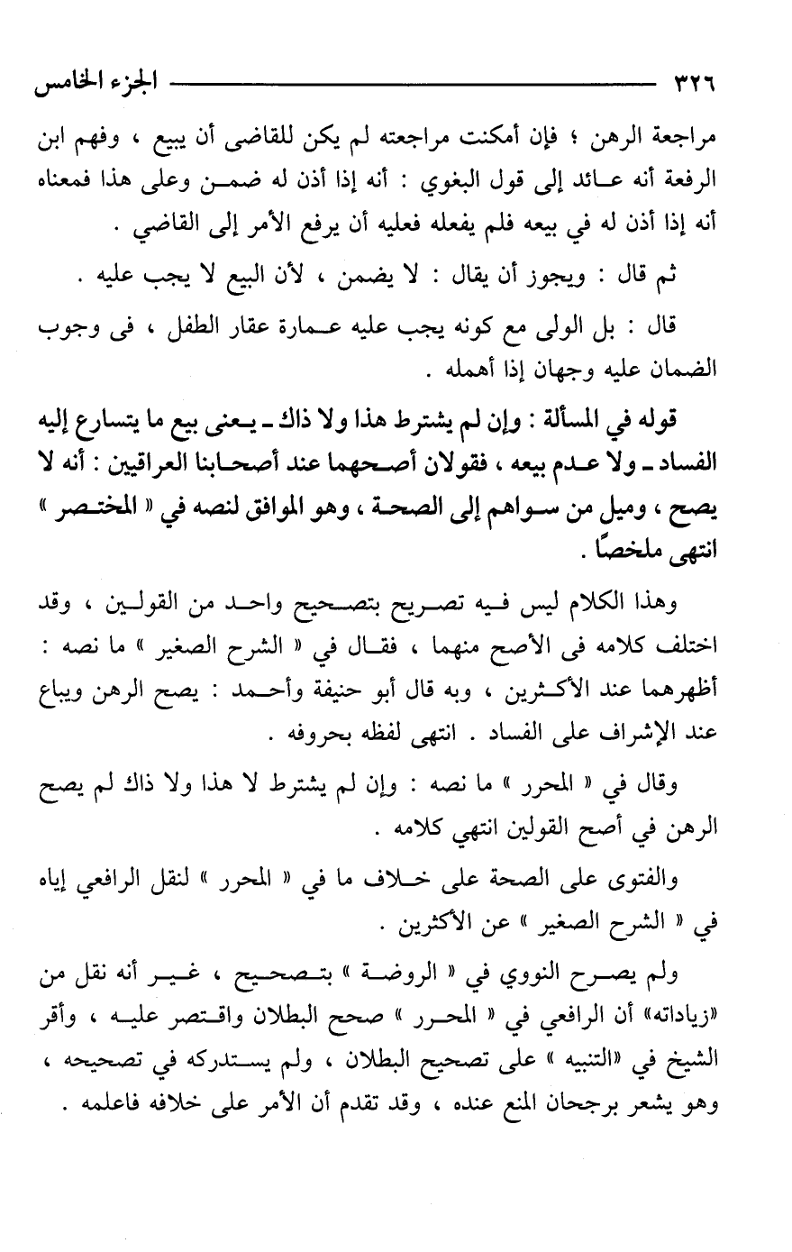 وهذا الكلام ليس فيه تصريح بتصحيح واحد من القولين، وقد اختلف كلامه فى الأصح منهما، فقال في "الشرح الصغير" ما نصه: أظهرهما عند الأكثرين، وبه قال أبو حنيفة وأحمد: يصح الرهن ويباع عند الإشراف على الفساد. انتهى لفظه بحروفه.
