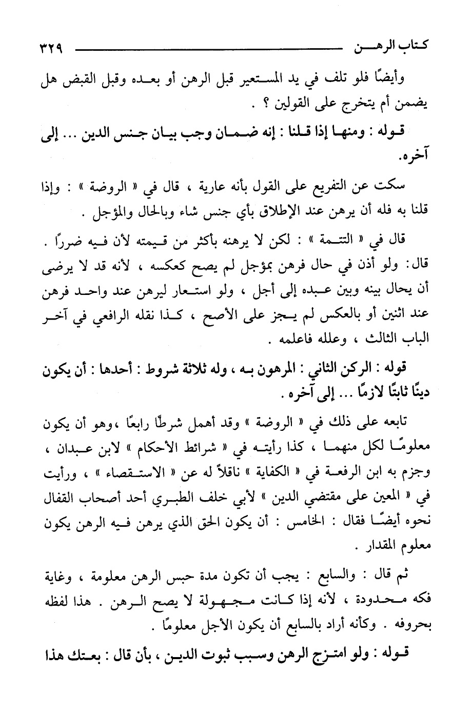 تابعه على ذلك في "الروضة" وقد أهمل شرطًا رابعًا، وهو أن يكون معلومًا لكل منهما، كذا رأيته في "شرائط الأحكام" لابن عبدان، وجزم به ابن الرفعة في "الكفاية" ناقلًا له عن "الاستقصاء"، ورأيت في "المعين على مقتضي الدين" لأبي خلف الطبري أحد أصحاب القفال نحوه أيضًا فقال: الخامس: أن يكون الحق الذي يرهن فيه الرهن يكون معلوم المقدار.