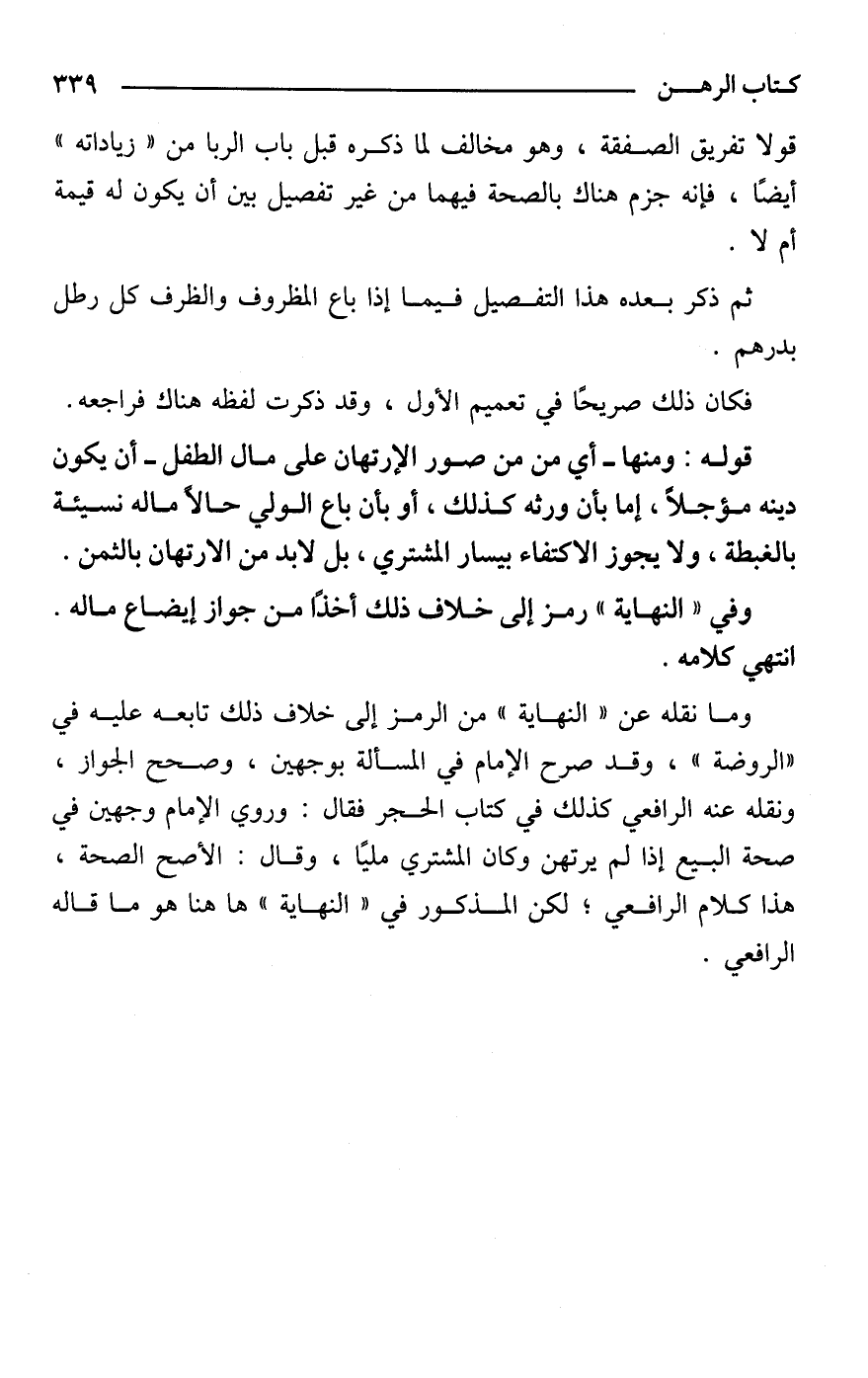 وما نقله عن "النهاية" من الرمز إلى خلاف ذلك تابعه عليه في "الروضة"، وقد صرح الإمام في المسألة بوجهين، وصحح الجواز، ونقله عنه الرافعي كذلك في كتاب الحجر فقال: وروي الإمام وجهين في صحة البيع إذا لم يرتهن وكان المشتري مليًا، وقال: الأصح الصحة، هذا كلام الرافعي؛ لكن المذكور في "النهاية" هاهنا هو ما قاله الرافعي.