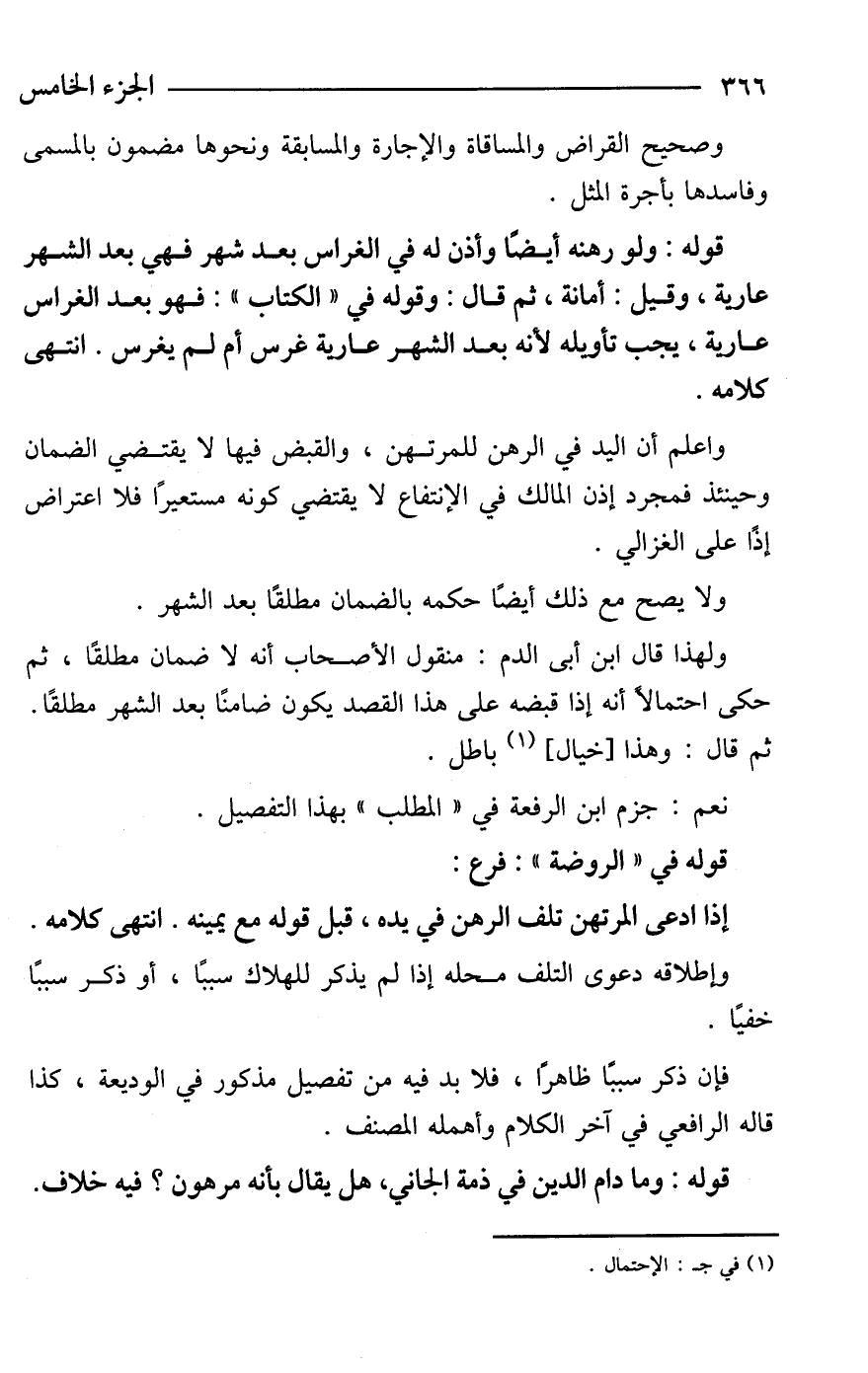 واعلم أن اليد في الرهن للمرتهن، والقبض فيها لا يقتضي الضمان وحينئذ فمجرد إذن المالك في الإنتفاع لا يقتضي كونه مستعيرًا فلا اعتراض إذًا على الغزالي.