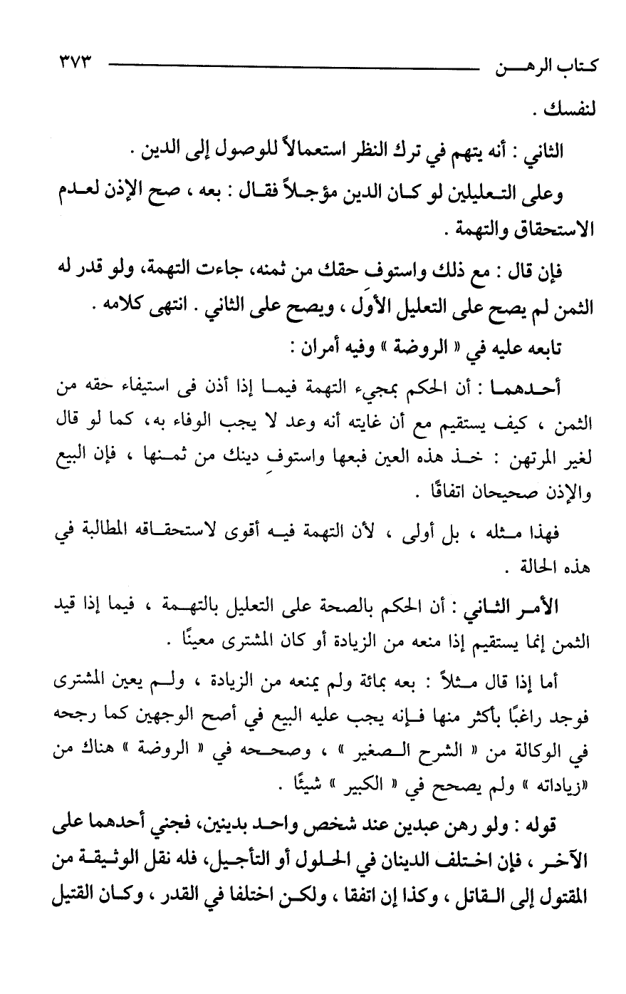 أحدهما: أن الحكم بمجيء التهمة فيما إذا أذن في استيفاء حقه من الثمن، كيف يستقيم مع أن غايته أنه وعد لا يجب الوفاء به، كما لو قال لغير المرتهن: خذ هذه العين فبعها واستوفِ دينك من ثمنها، فإن البيع والإذن صحيحان اتفاقًا.