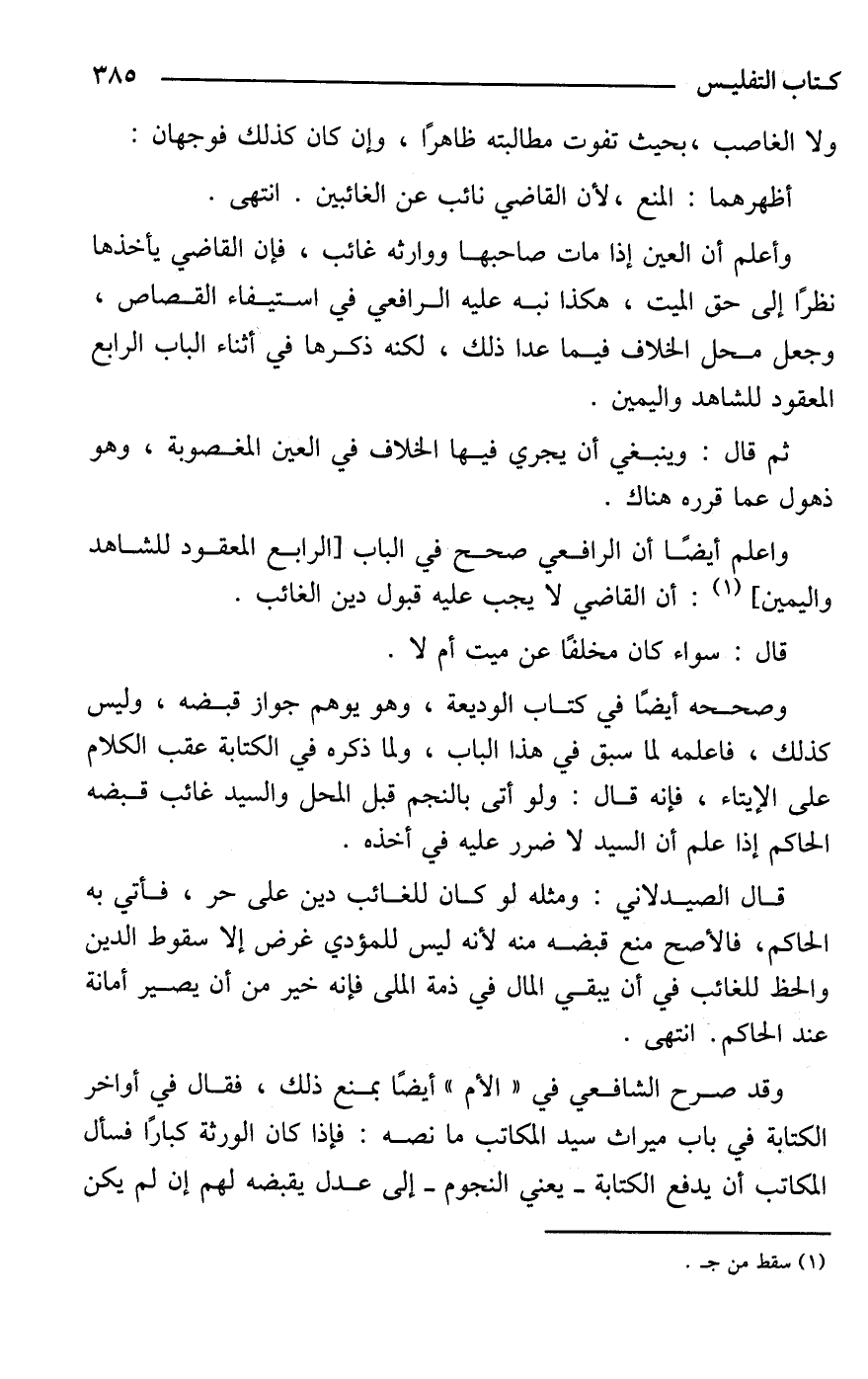 واعلم أن العين إذا مات صاحبها ووارثه غائب، فإن القاضي يأخذها نظرًا إلى حق الميت، هكذا نبه عليه الرافعي في استيفاء القصاص، وجعل محل الخلاف فيما عدا ذلك، لكنه ذكرها في أثناء الباب الرابع المعقود للشاهد واليمين.