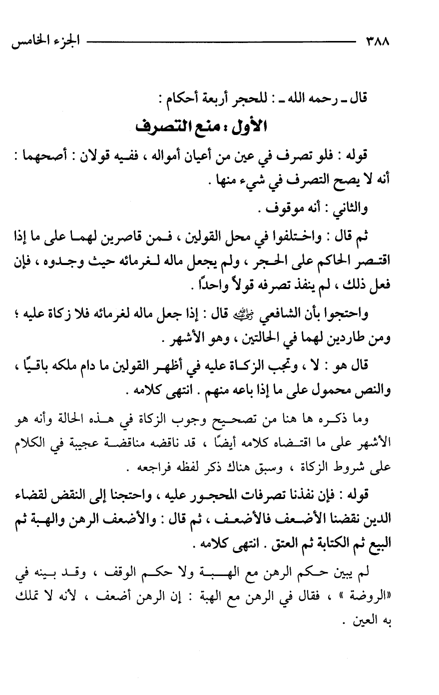 قال -رحمه الله-: للحجر أربعة أحكام: