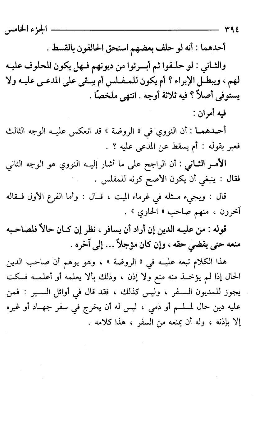 هذا الكلام تبعه عليه في "الروضة"، وهو يوهم أن صاحب الدين الحال إذا لم يؤخذ منه منع ولا إذن، وذلك بألا يعلمه أو أعلمه فسكت يجوز للمديون السفر، وليس كذلك، فقد قال في أوائل السير: فمن عليه دين حال لمسلم أو ذمي، ليس له أن يخرج في سفر جهاد أو غيره إلا بإذنه، وله أن يمنعه من السفر، هذا كلامه.