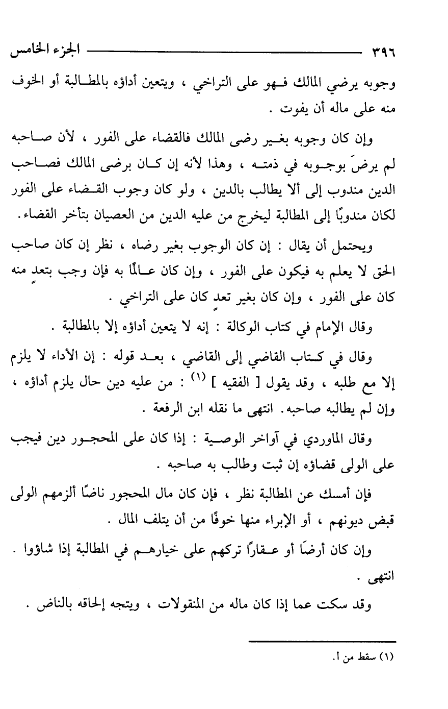 وقال الإمام في كتاب الوكالة: إنه لا يتعين أداؤه إلا بالمطالبة.