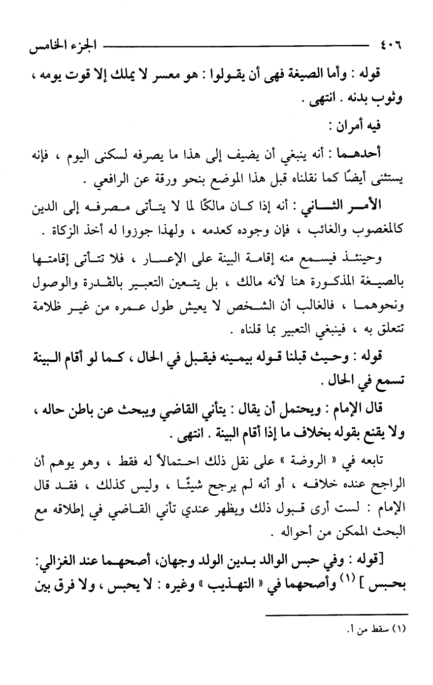 وحينئذ فيسمع منه إقامة البينة على الإعسار، فلا تتأتى إقامتها بالصيغة المذكورة هنا لأنه مالك، بل يتعين التعبير بالقدرة والوصول ونحوهما، فالغالب أن الشخص لا يعيش طول عمره من غير ظلامة تتعلق به، فينبغي التعبير بما قلناه.