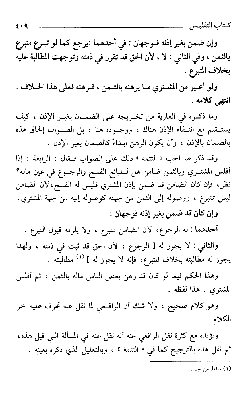 وقد ذكر صاحب "التتمة" ذلك على الصواب فقال: الرابعة: إذا أفلس المشتري وبالثمن ضامن هل للبائع الفسخ والرجوع في عين ماله؟ نظر، فإن كان الضامن قد ضمن بإذن المشتري فليس له الفسخ، لأن الضامن ليس بمتبرع، ووصوله إلى الثمن من جهته كوصوله إليه من جهة المشتري.