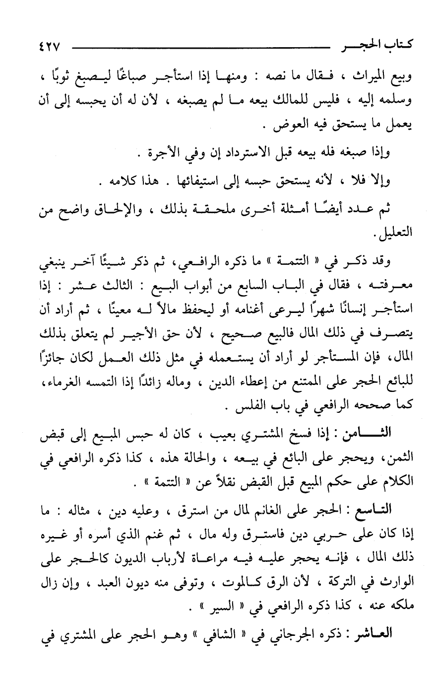 العاشر: ذكره الجرجاني في "الشافي" وهو الحجر على المشتري في