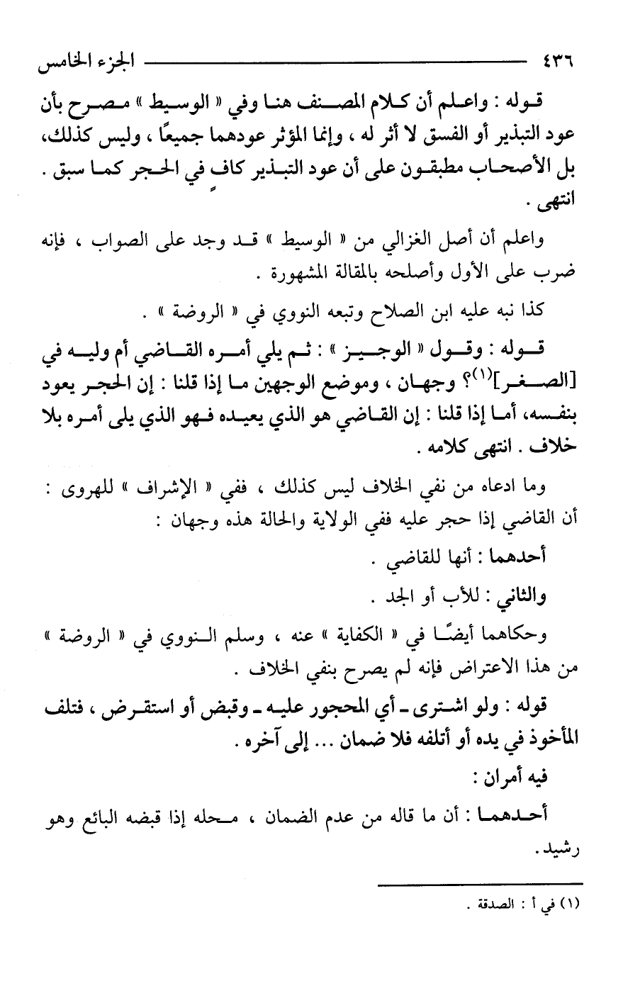 واعلم أن أصل الغزالي من "الوسيط" قد وجد على الصواب، فإنّه ضرب على الأوّل وأصلحه بالمقالة المشهورة.