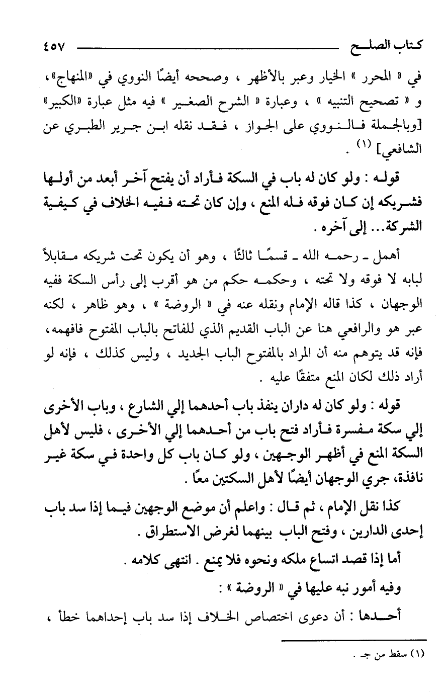 كذا نقل الإمام، ثم قال: واعلم أن موضع الوجهين فيما إذا سد باب إحدى الدارين، وفتح الباب بينهما لغرض الاستطراق.