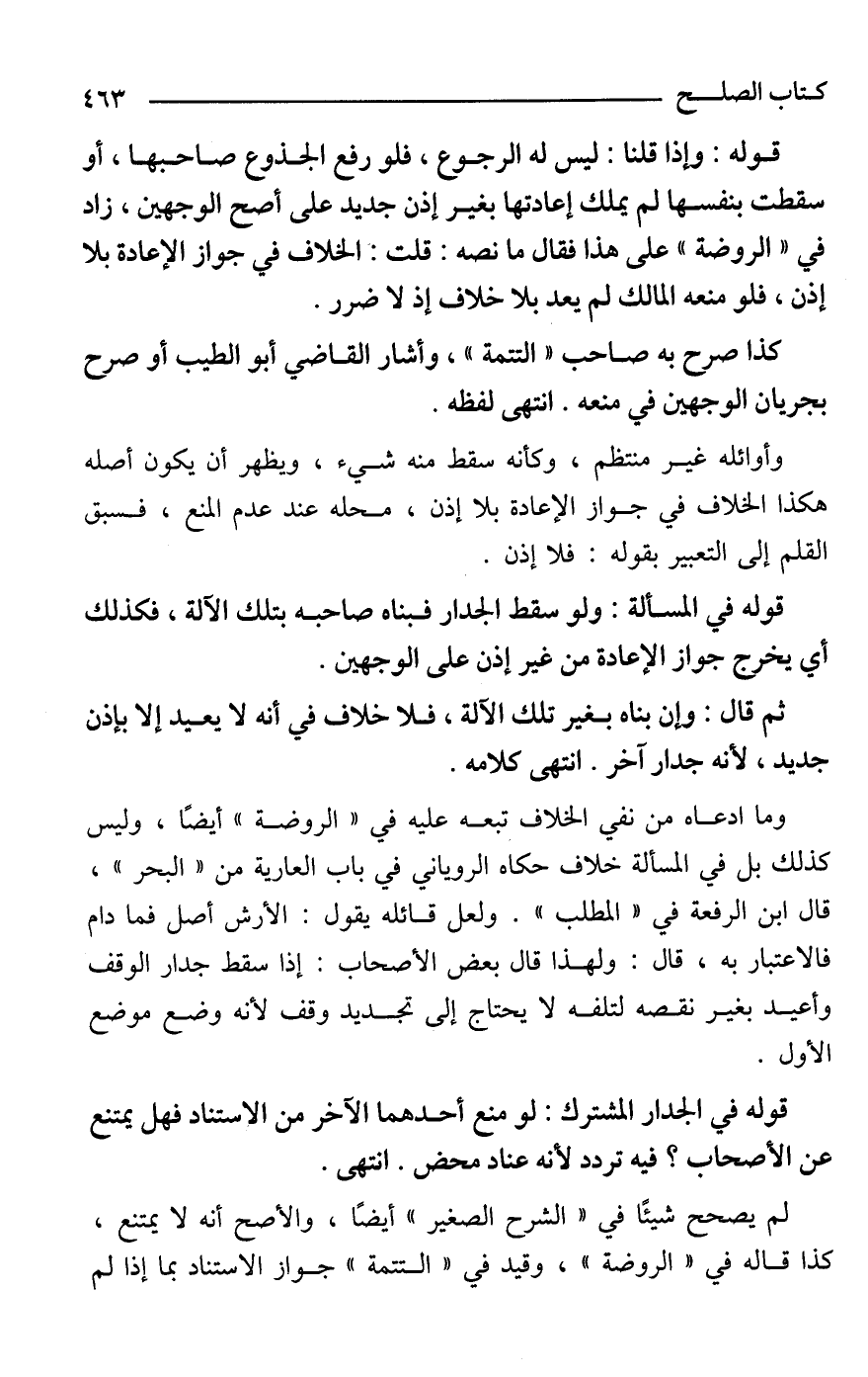 وما ادعاه من نفي الخلاف تبعه عليه في "الروضة" أيضًا، وليس كذلك بل في المسألة خلاف حكاه الروياني في باب العارية من "البحر"، قال ابن الرفعة في "المطلب". ولعلّ قائله يقول: الأرش أصل فما دام فالاعتبار به، قال: ولهذا قال بعض الأصحاب: إذا سقط جدار الوقف وأعيد بغير نقصه لتلفه لا يحتاج إلى تجديد وقف لأنه وضع موضع الأول.