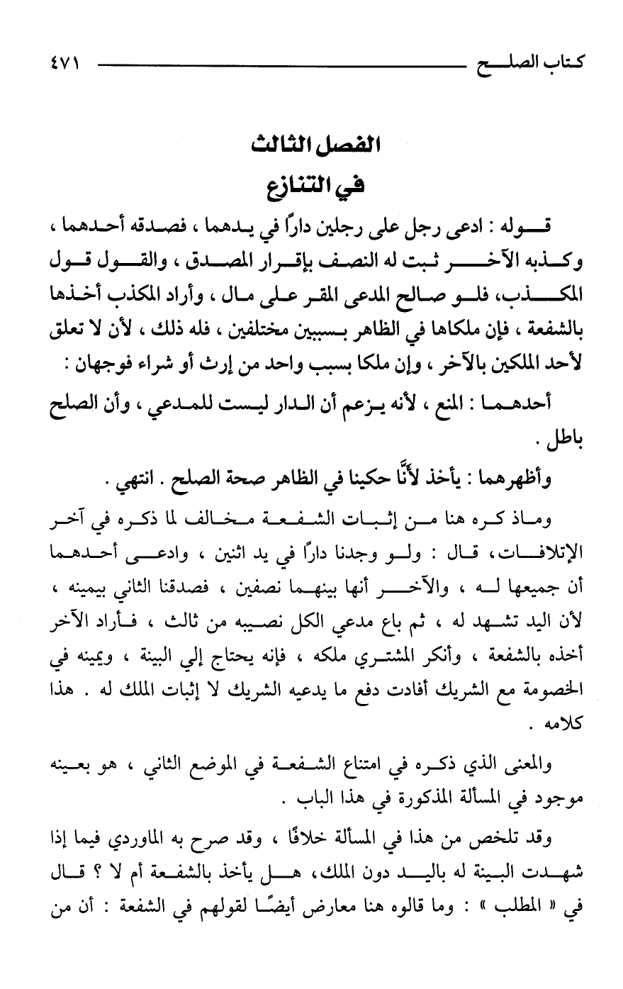 والمعنى الذي ذكره في امتناع الشفعة في الموضع الثاني، هو بعينه موجود في المسألة المذكورة في هذا الباب.