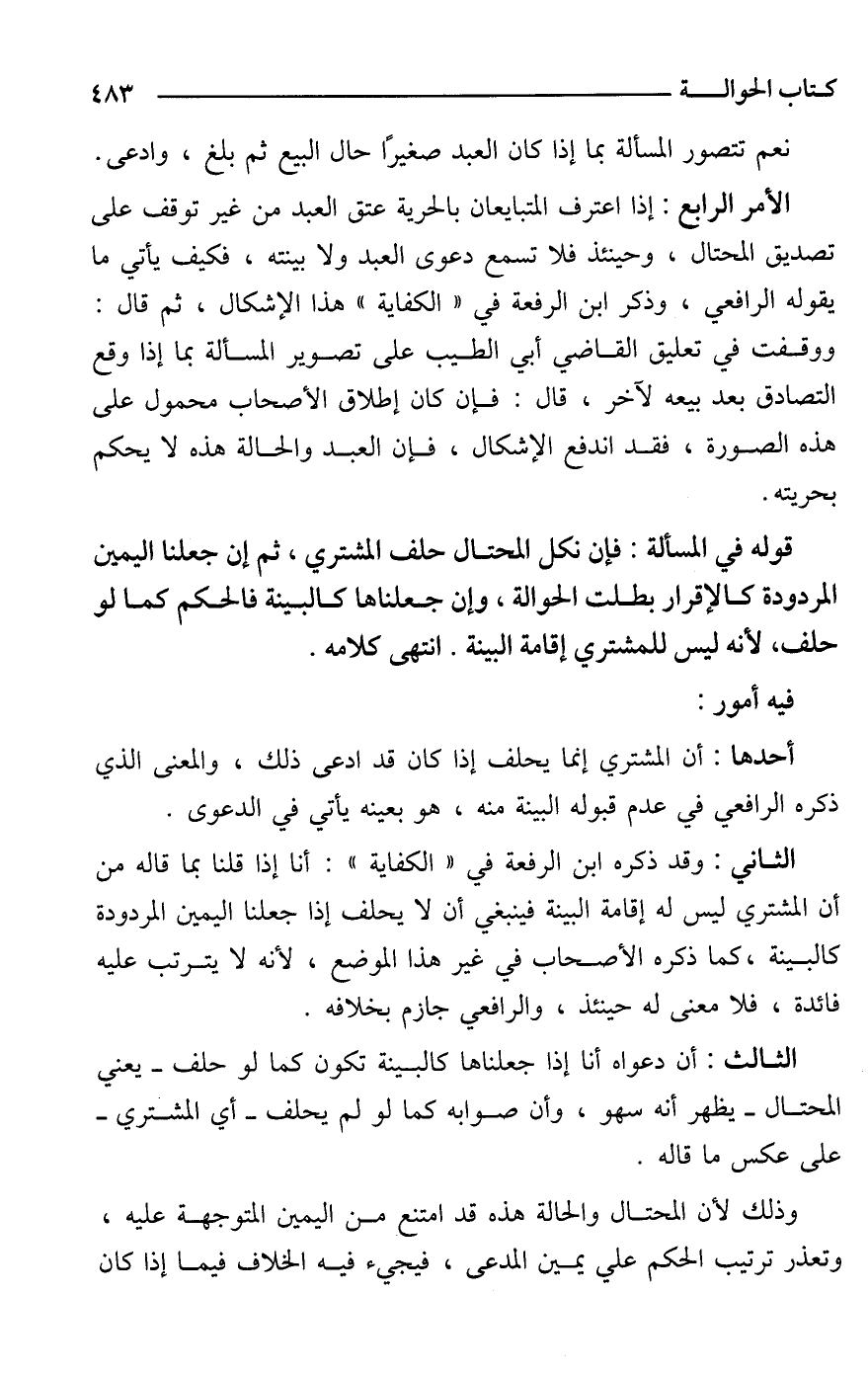الثالث: أن دعواه أنا إذا جعلناها كالبينة تكون كما لو حلف -يعني المحتال- يظهر أنه سهو، وأن صوابه كما لو لم يحلف -أي المشتري- على عكس ما قاله.