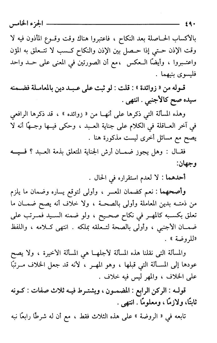 قوله من "زوائده": قلت: لو ثبت على عبد دين بالمعاملة فضمنه سيده صح كالأجنبي. انتهى.