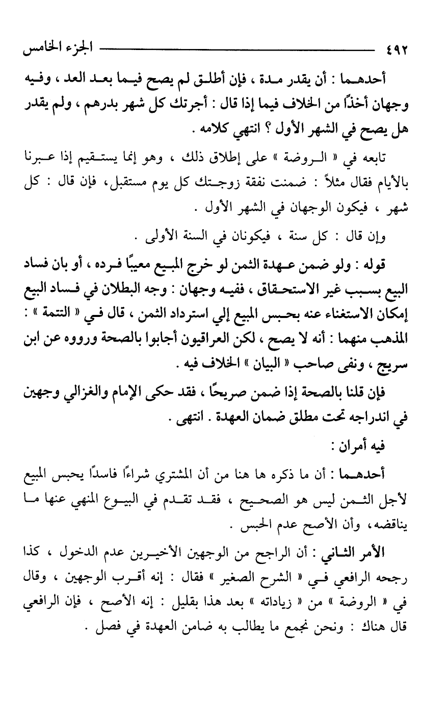الأمر الثاني: أن الراجح من الوجهين الأخيرين عدم الدخول، كذا رجحه الرافعي في "الشرح الصغير" فقال: إنه أقرب الوجهين، وقال في "الروضة" من "زياداته" بعد هذا بقليل: إنه الأصح، فإن الرافعي قال هناك: ونحن نجمع ما يطالب به ضامن العهدة في فصل.