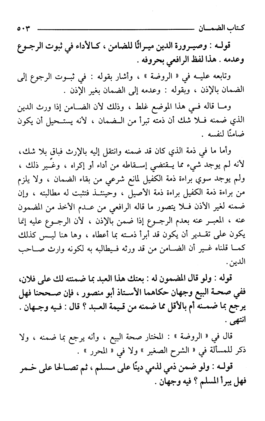 قوله: وصيرورة الدين ميراثًا للضامن، كالأداء في ثبوت الرجوع وعدمه. هذا لفظ الرافعي بحروفه.
