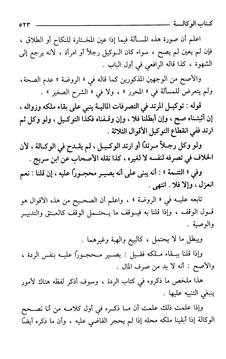 هذا ملخص ما ذكروه في كتاب الردة، وسوف أذكر لفظه هناك لأمور ينبغي التنبيه عليها.