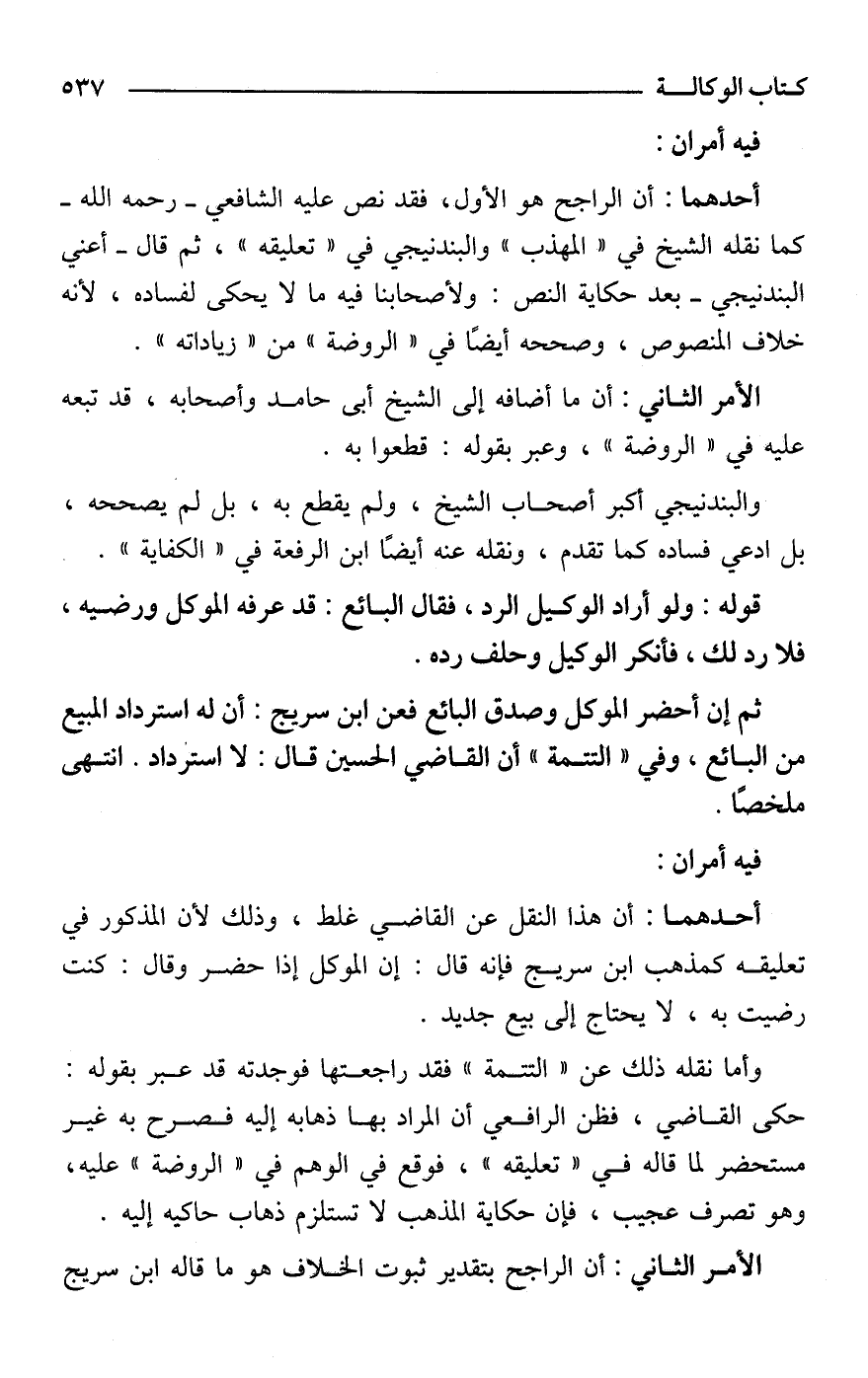 أحدهما: أن هذا النقل عن القاضي غلط، وذلك لأن المذكور في تعليقه كمذهب ابن سريج فإنه قال: إن الموكل إذا حضر وقال: كنت رضيت به، لا يحتاج إلى بيع جديد.