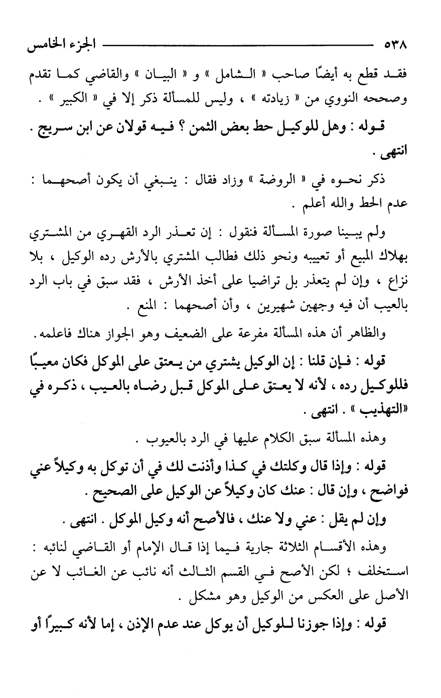 ولم يبينا صورة المسألة فنقول: إن تعذر الرد القهري من المشتري بهلاك المبيع أو تعييبه ونحو ذلك فطالب المشتري بالأرش رده الوكيل، بلا نزاع، وإن لم يتعذر بل تراضيا على أخذ الأرش، فقد سبق في باب الرد بالعيب أن فيه وجهين شهيرين، وأن أصحهما: المنع.