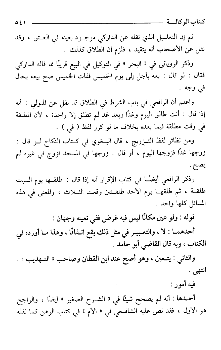 ومن نظائر لفظ التزويج، قال البغوي في كتاب النكاح لو قال: زوجها غدًا فزوجها اليوم، أو قال: زوجها في المسجد فزوج في غيره لم يصح.