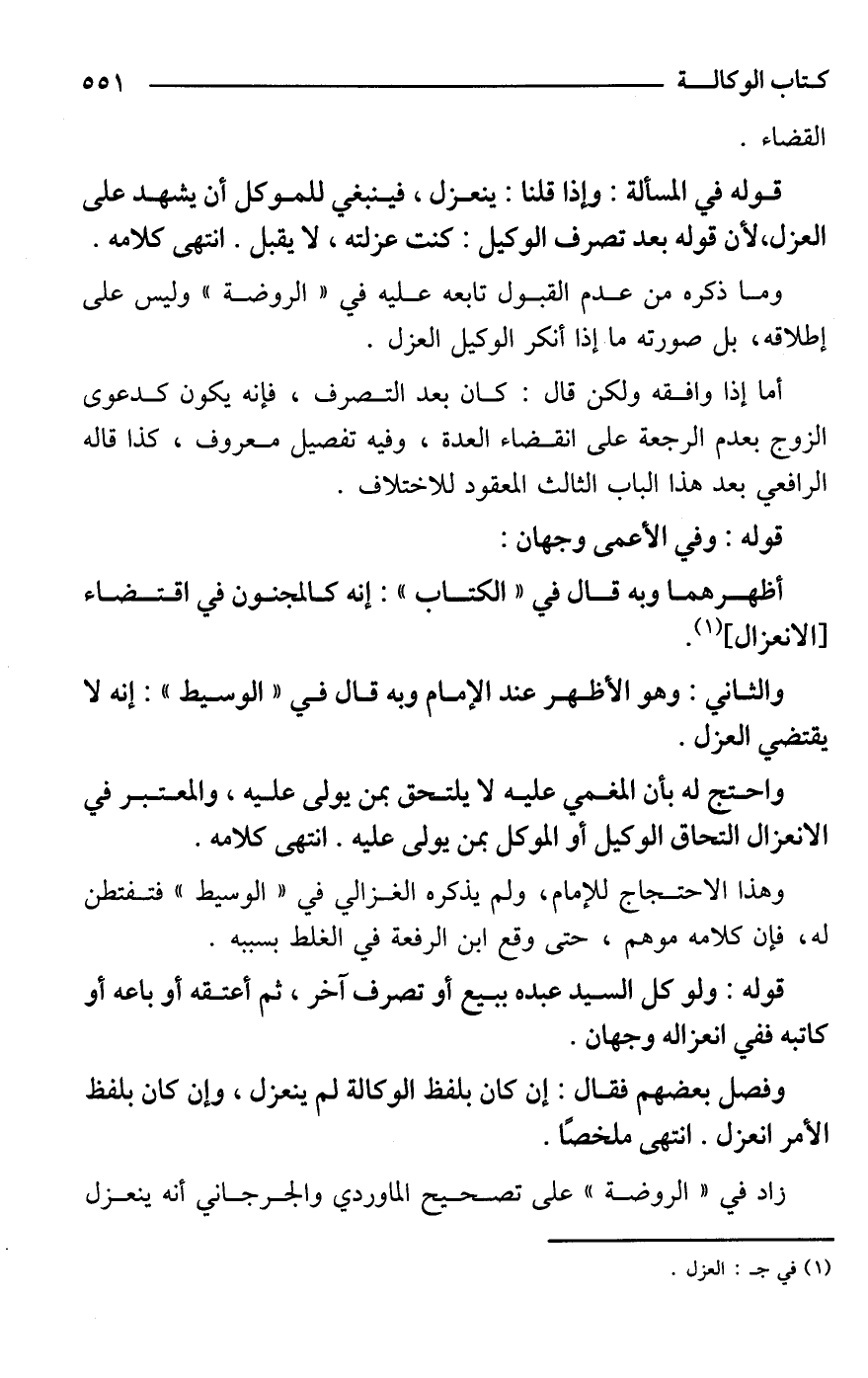 زاد في "الروضة" على تصحيح الماوردي والجرجاني أنه ينعزل