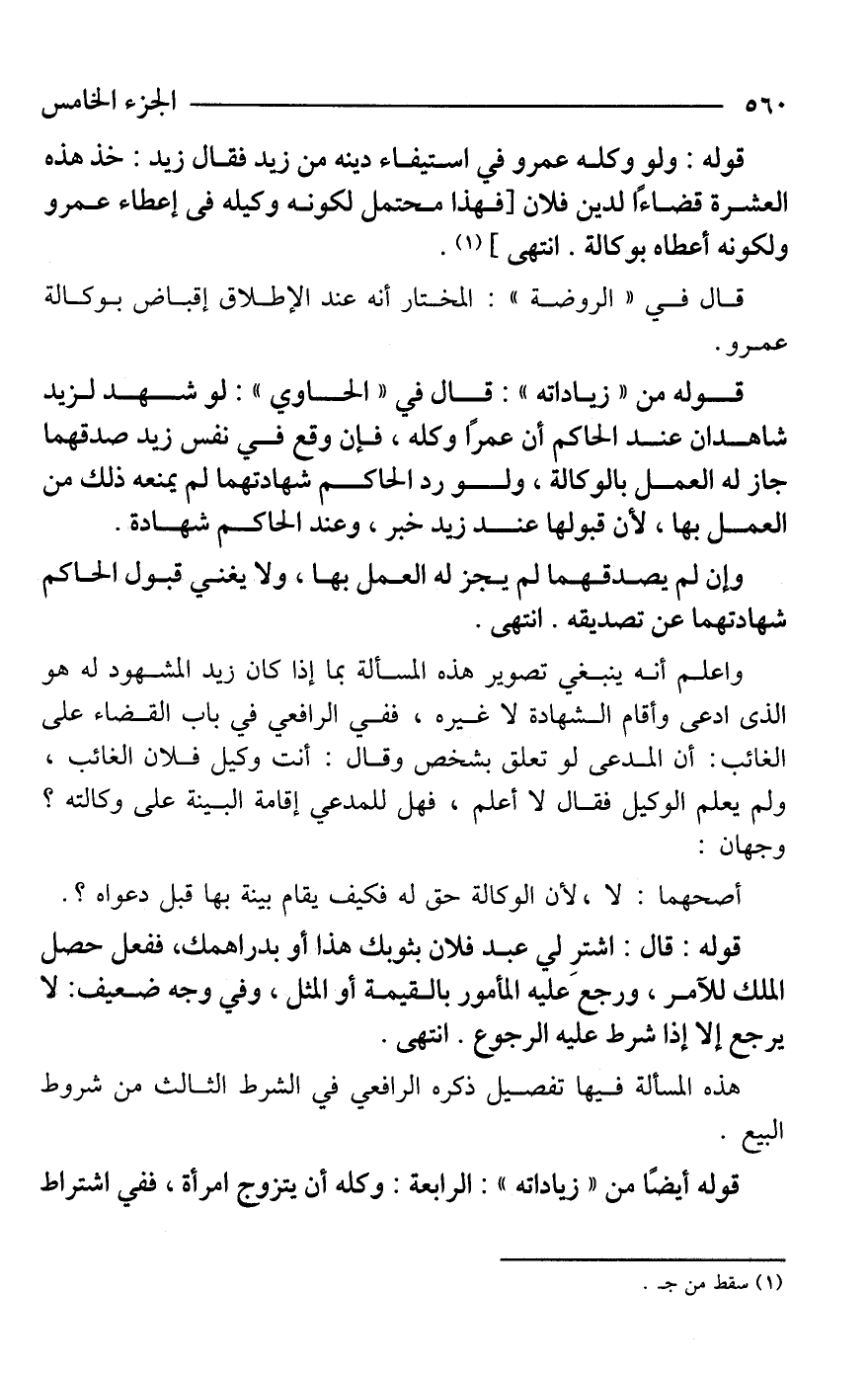 قوله أيضًا من "زياداته": الرابعة: وكله أن يتزوج امرأة، ففي اشتراط