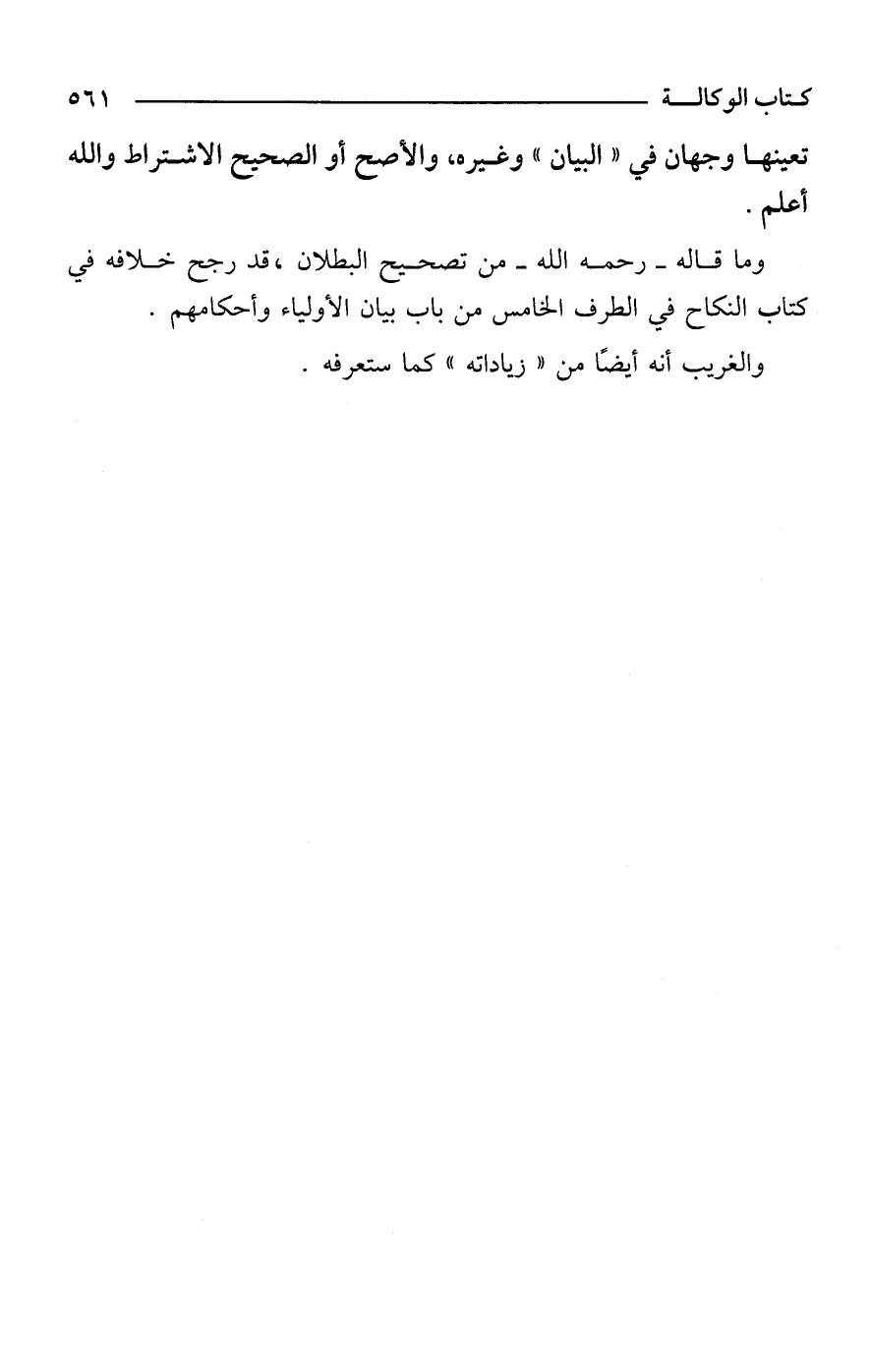 وما قاله -رحمه الله- من تصحيح البطلان، قد رجح خلافه في كتاب النكاح في الطرف الخامس من باب بيان الأولياء وأحكامهم.