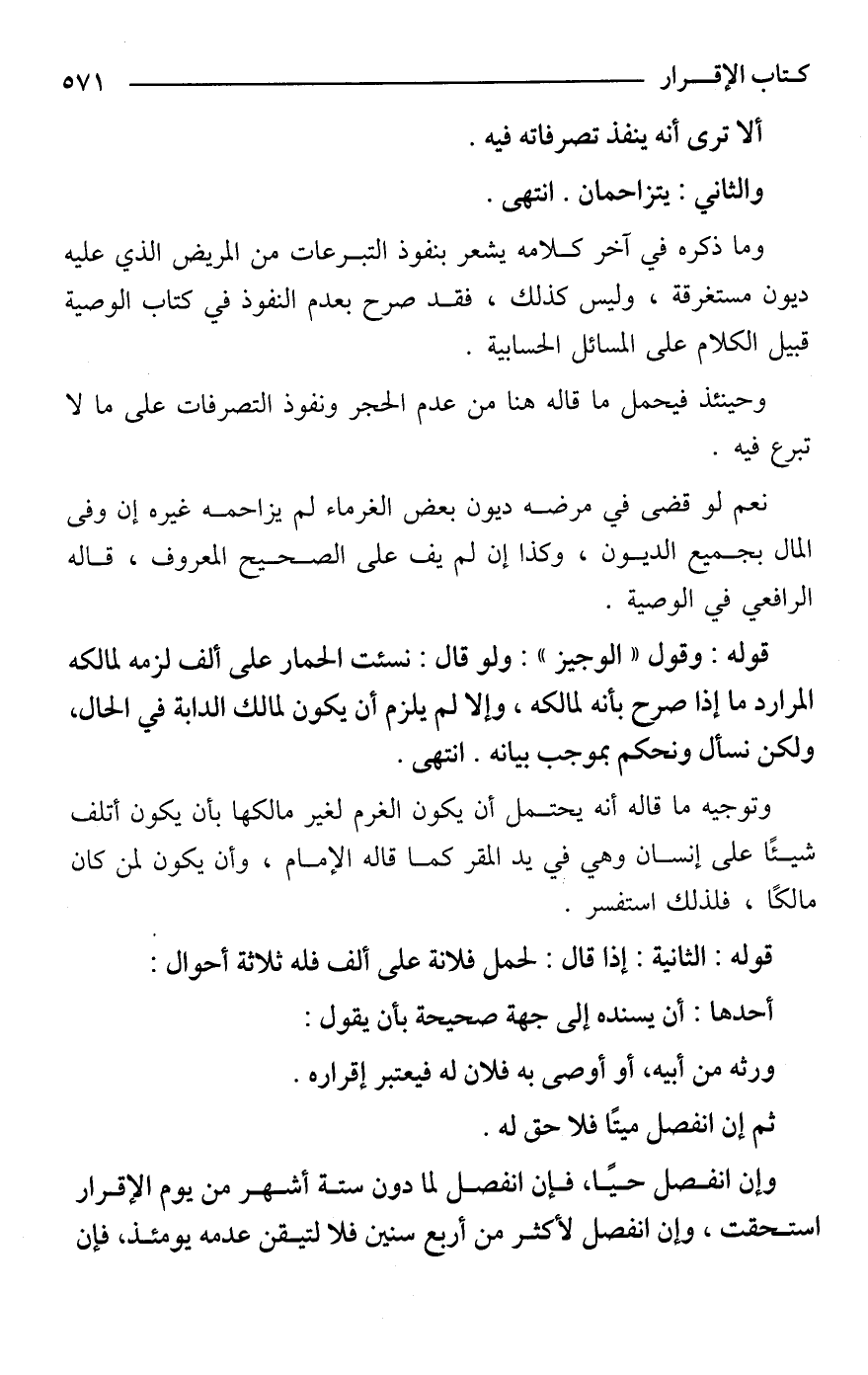 قوله: وقول "الوجيز": ولو قال: نسئت الحمار على ألف لزمه لمالكه المراد ما إذا صرح بأنه لمالكه، وإلا لم يلزم أن يكون لمالك الدابة في الحال، ولكن نسأل ونحكم بموجب بيانه. انتهى.