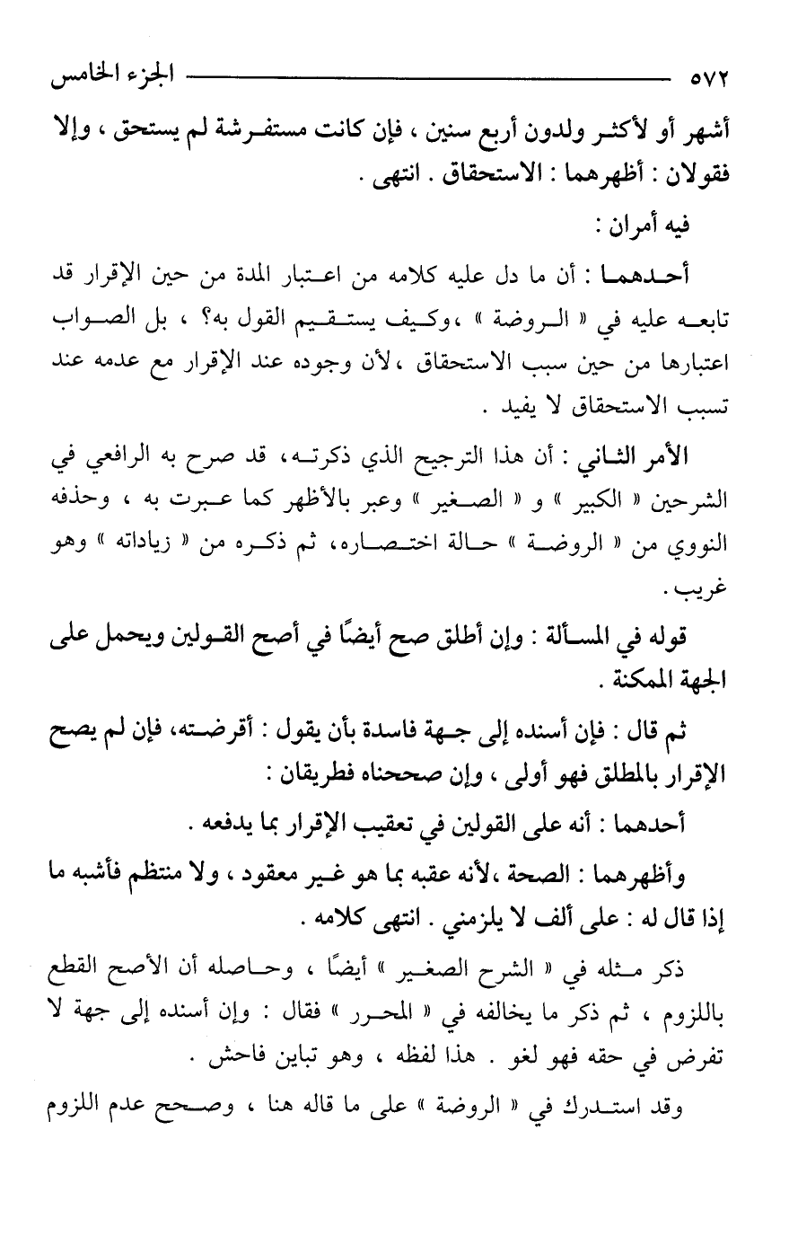 أحدهما: أن ما دل عليه كلامه من اعتبار المدة من حين الإقرار قد تابعه عليه في "الروضة"، وكيف يستقيم القول به؟ ، بل الصواب اعتبارها من حين سبب الاستحقاق، لأن وجوده عند الإقرار مع عدمه عند تسبب الاستحقاق لا يفيد.