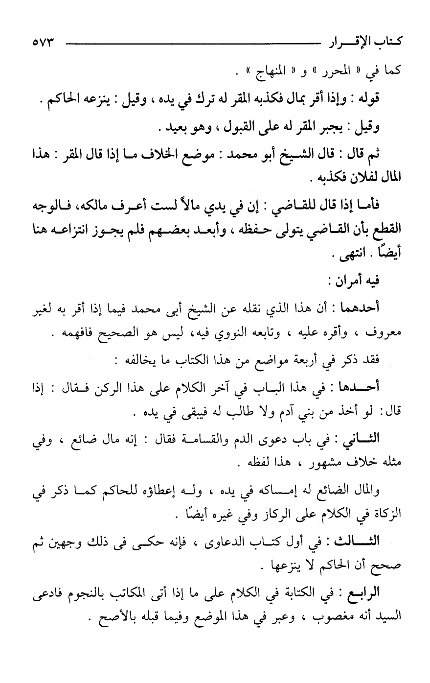 أحدهما: أن هذا الذي نقله عن الشيخ أبى محمد فيما إذا أقر به لغير معروف، وأقره عليه، وتابعه النووي فيه، ليس هو الصحيح فافهمه.