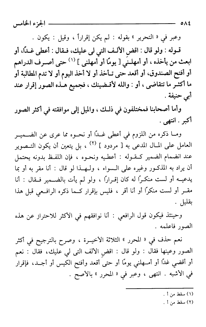 نعم حذف في "المحرر" الثلاثة الأخيرة، وصرح بالترجيح في أكثر الصور وعينها فقال: ولو قال: اقضِ الألف التى لي عليك، فقال: نعم أو أقضي غدًا أو أمهلني يومًا أو حتى أقعد وأفتح الكيس أو أجد، فإقرار في الأشبه. انتهى، وعبر في "المحرر" بالأصح.