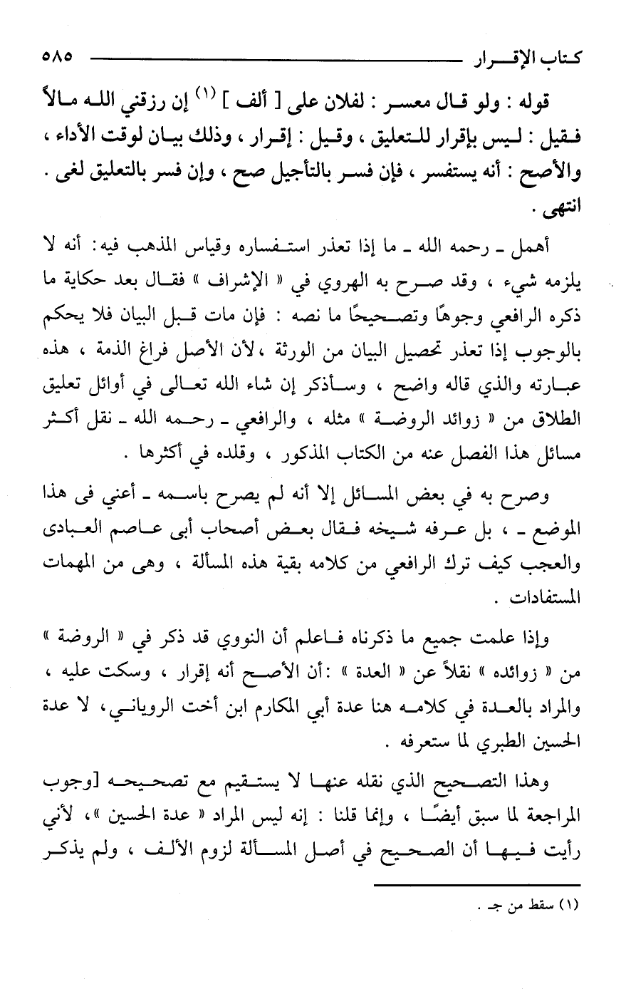 وهذا التصحيح الذي نقله عنها لا يستقيم مع تصحيحه [وجوب المراجعة لما سبق أيضًا، وإنما قلنا: إنه ليس المراد "عدة الحسين"، لأني رأيت فيها أن الصحيح في أصل المسألة لزوم الألف، ولم يذكر