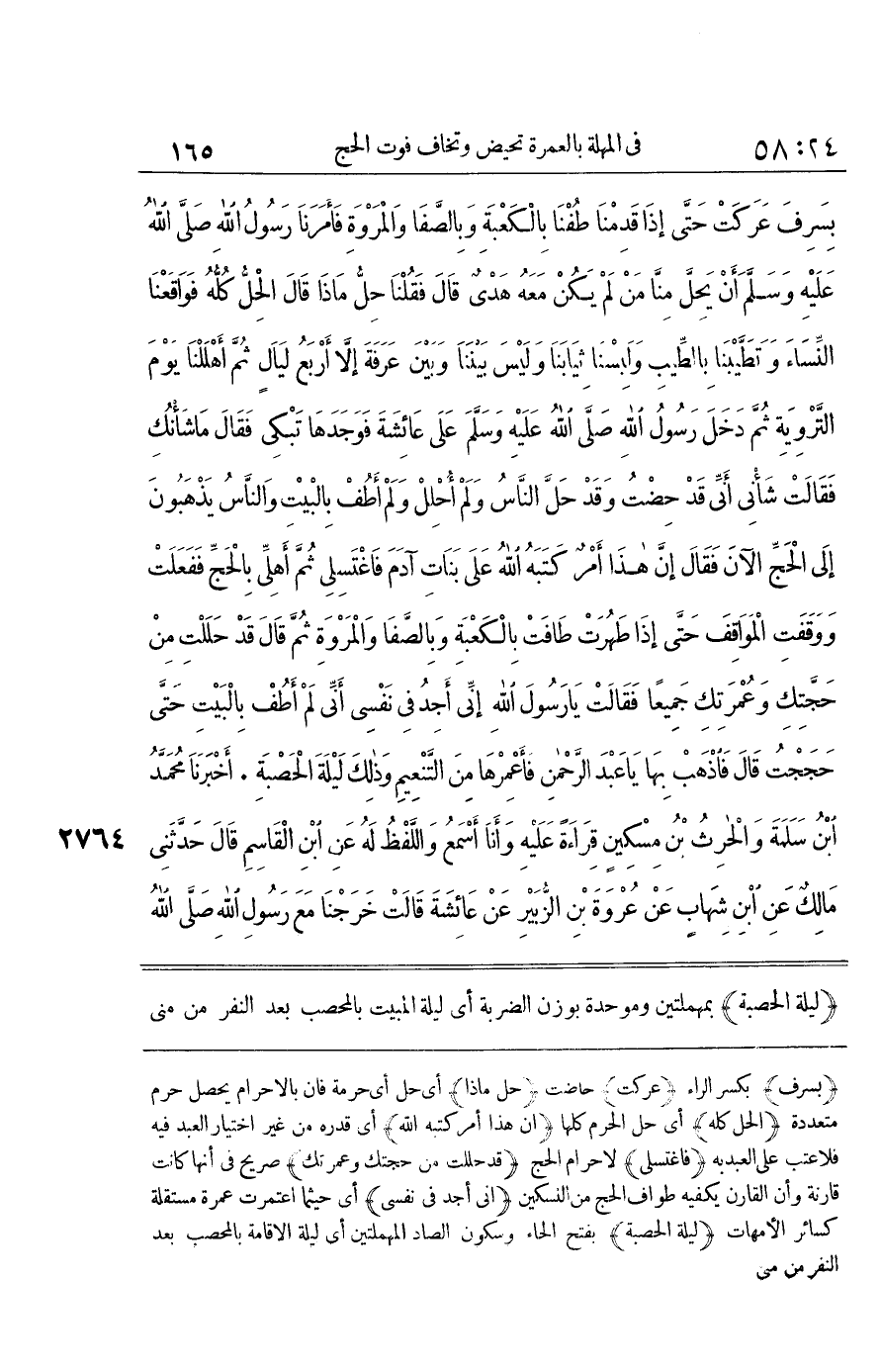 [2763] لَيْلَةَ الْحَصْبَةِ بِمُهْمَلَتَيْنِ وَمُوَحَّدَةٍ بِوَزْنِ الضَّرْبَةِ أَيْ لَيْلَةَ الْمَبِيتِ بِالْمُحَصَّبِ بَعْدَ النَّفْرِ مِنْ مِنًى