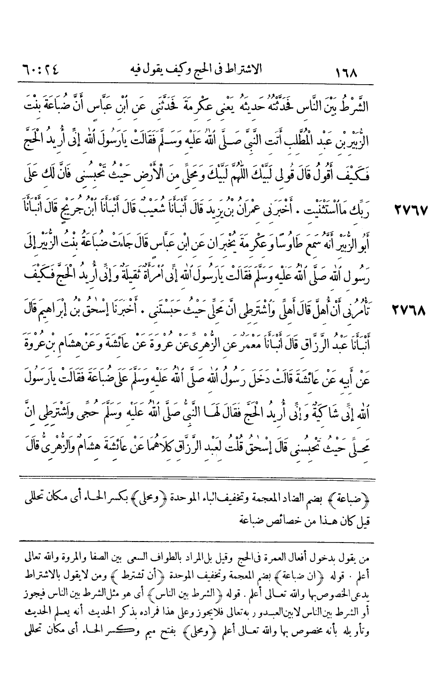 [2767] ضُبَاعَةَ بِضَمِّ الضَّادِ الْمُعْجَمَةِ وَتَخْفِيفِ الْبَاءِ الْمُوَحَّدَةِ وَمَحِلِّي بِكَسْرِ الْحَاءِ أَيْ مَكَانَ تَحَلُّلِي قِيلَ كَانَ هَذَا من خَصَائِص ضباعة