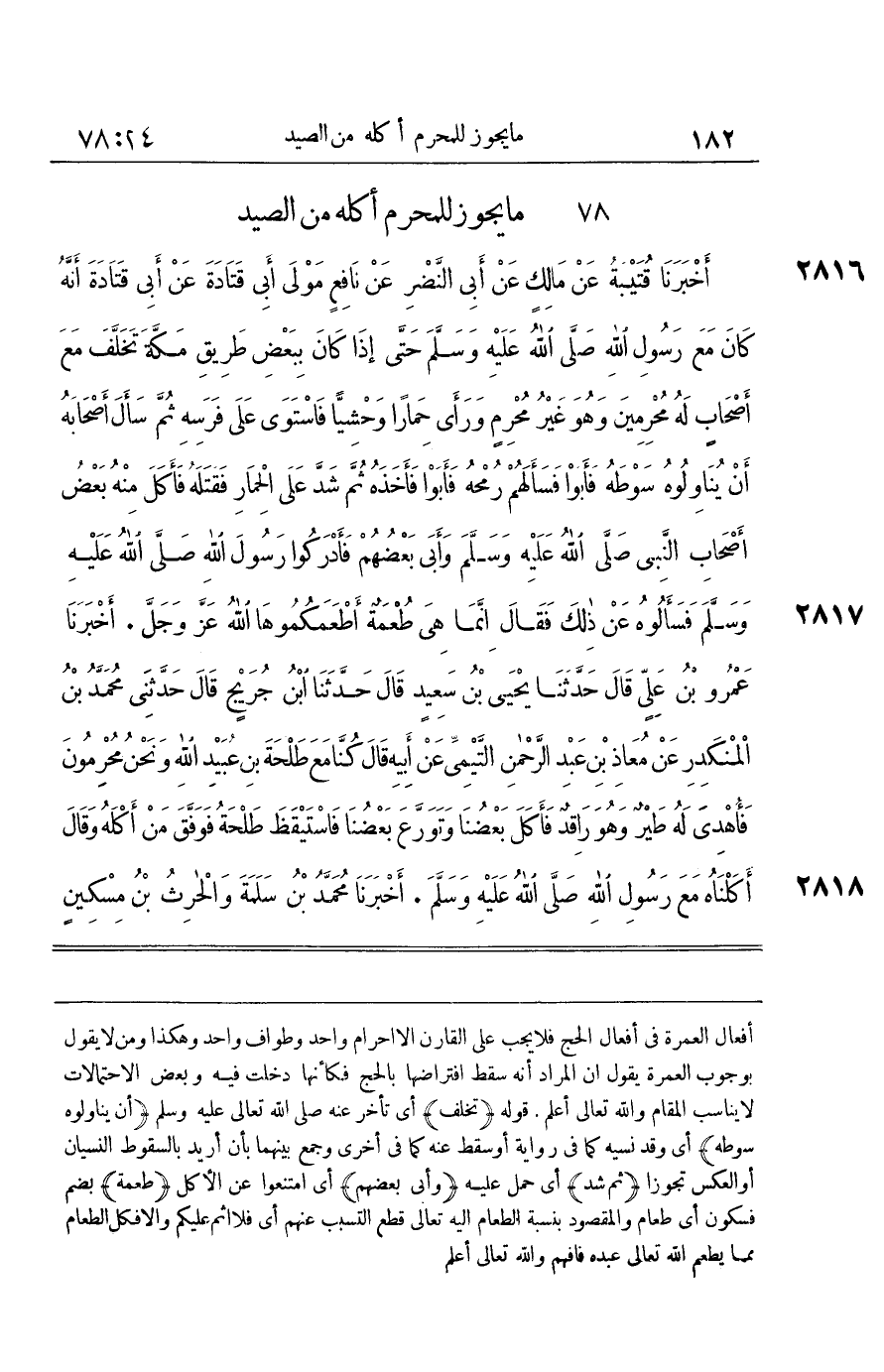 [2816] أَن يناولوه سَوْطه أَي وَقد نَسيَه كَمَا فِي رِوَايَة أَو سقط عَنهُ كَمَا فِي أُخْرَى وَجمع بَينهمَا بِأَن أُرِيد بالسقوط النسْيَان أَو الْعَكْس تجوزا ثمَّ شدّ أَي حمل عَلَيْهِ وأبى بَعضهم أَي امْتَنعُوا عَن الْأكل طعمه بِضَم فَسُكُون أَي طَعَام وَالْمَقْصُود بِنِسْبَة الطَّعَام إِلَيْهِ تَعَالَى قطع التَّسَبُّب عَنْهُم أَي فَلَا اثم عَلَيْكُم والا فَكل الطَّعَام مِمَّا يطعم الله تَعَالَى عَبده فَافْهَم وَالله تَعَالَى أعلم قَوْله