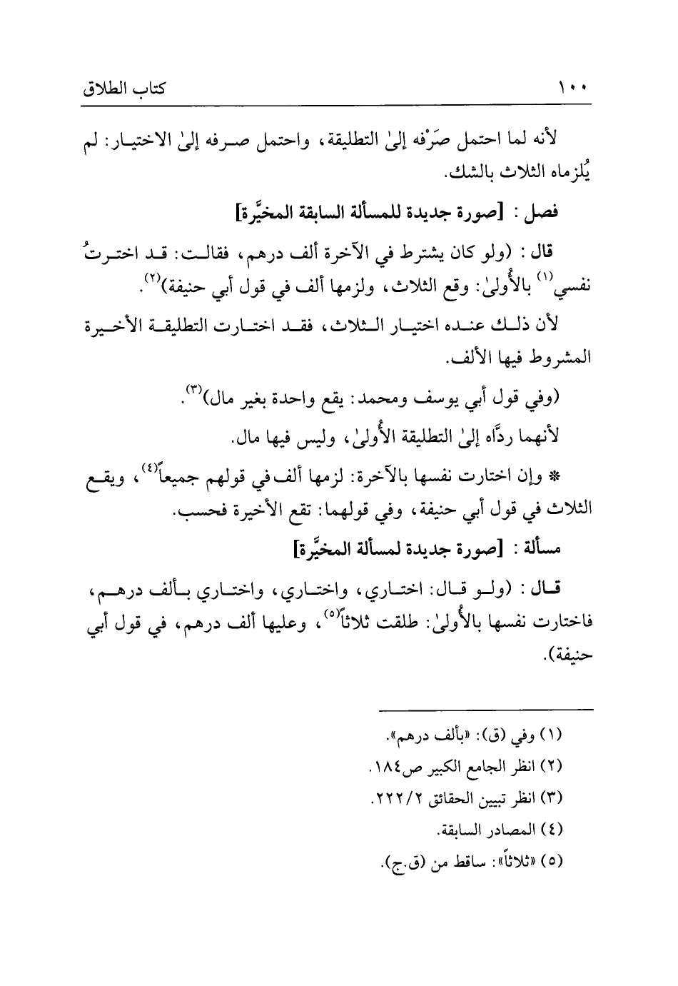 فصل: [صورة جديدة للمسألة السابقة المخيرة]