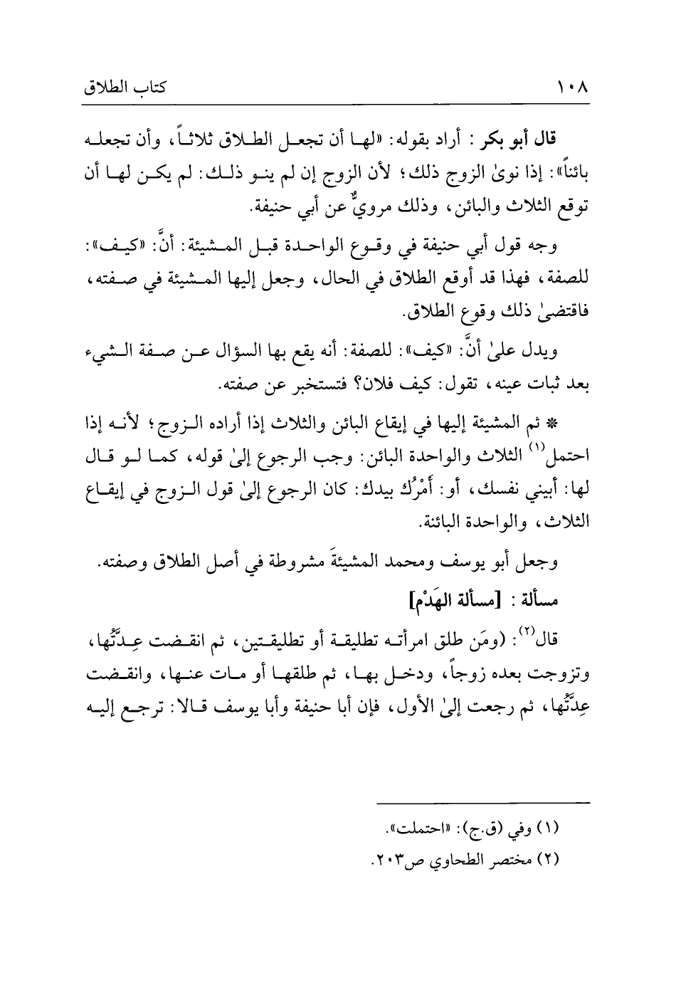 * ثم المشيئة إليها في إيقاع البائن والثلاث إذا أراده الزوج؛ لأنه إذا احتمل الثلاث والواحدة البائن: وجب الرجوع إلى قوله، كما لو قال لها: أبيني نفسك، أو: أمرك بيدك: كان الرجوع إلى قول الزوج في إيقاع الثلاث، والواحدة البائنة.