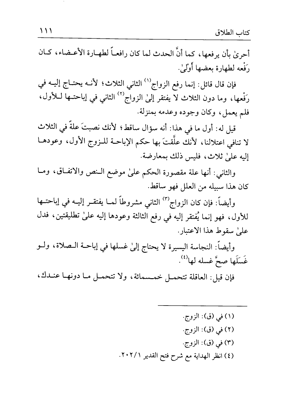 فإن قال قائل: إنما رفع الزواج الثاني الثلاث؛ لأنه يحتاج إليه في رفعها، وما دون الثلاث لا يفتقر إلى الزواج الثاني في إباحتها للأول، فلم يعمل، وكان وجوده وعدمه بمنزلة.