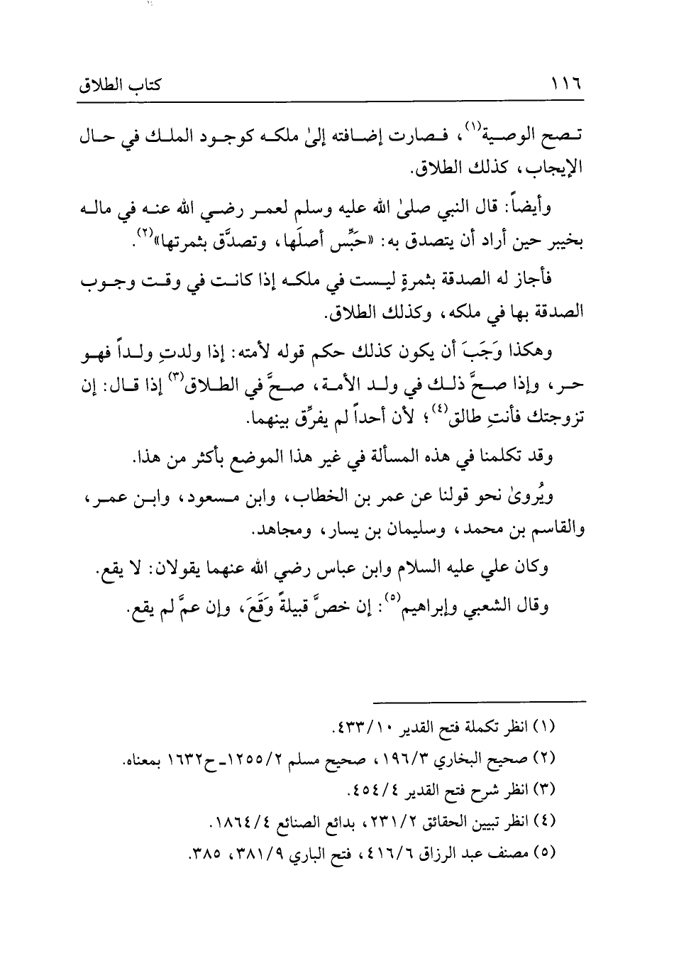 فأجاز له الصدقة بثمرة ليست في ملكه إذا كانت في وقت وجوب الصدقة بها في ملكه، وكذلك الطلاق.