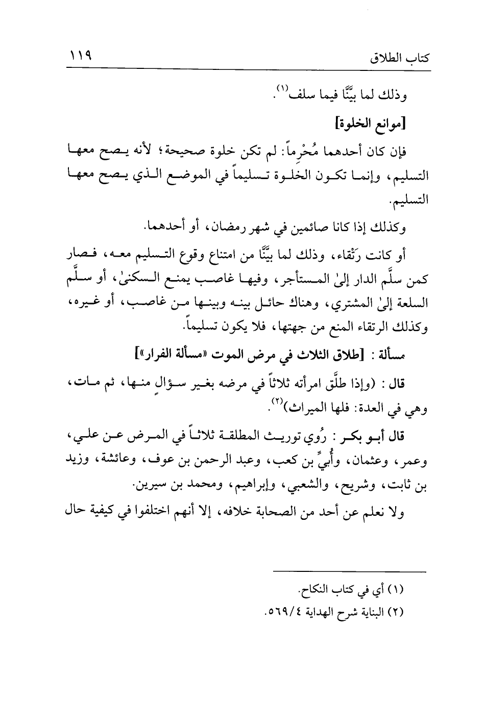 مسألة: [طلاق الثلاث في مرض الموت "مسألة الفرار"]