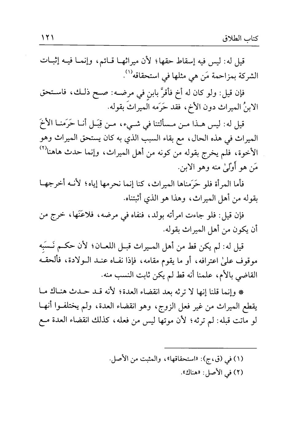 قيل له: ليس هذا من مسألتنا في شيء، من قبل أنا حرمنا الأخ الميراث في هذه الحال، مع بقاء السبب الذي به كان يستحق الميراث وهو الأخوة، فلم يخرج بقوله من كونه من أهل الميراث، وإنما حدث ها هنا من هو أولى منه وهو الابن.