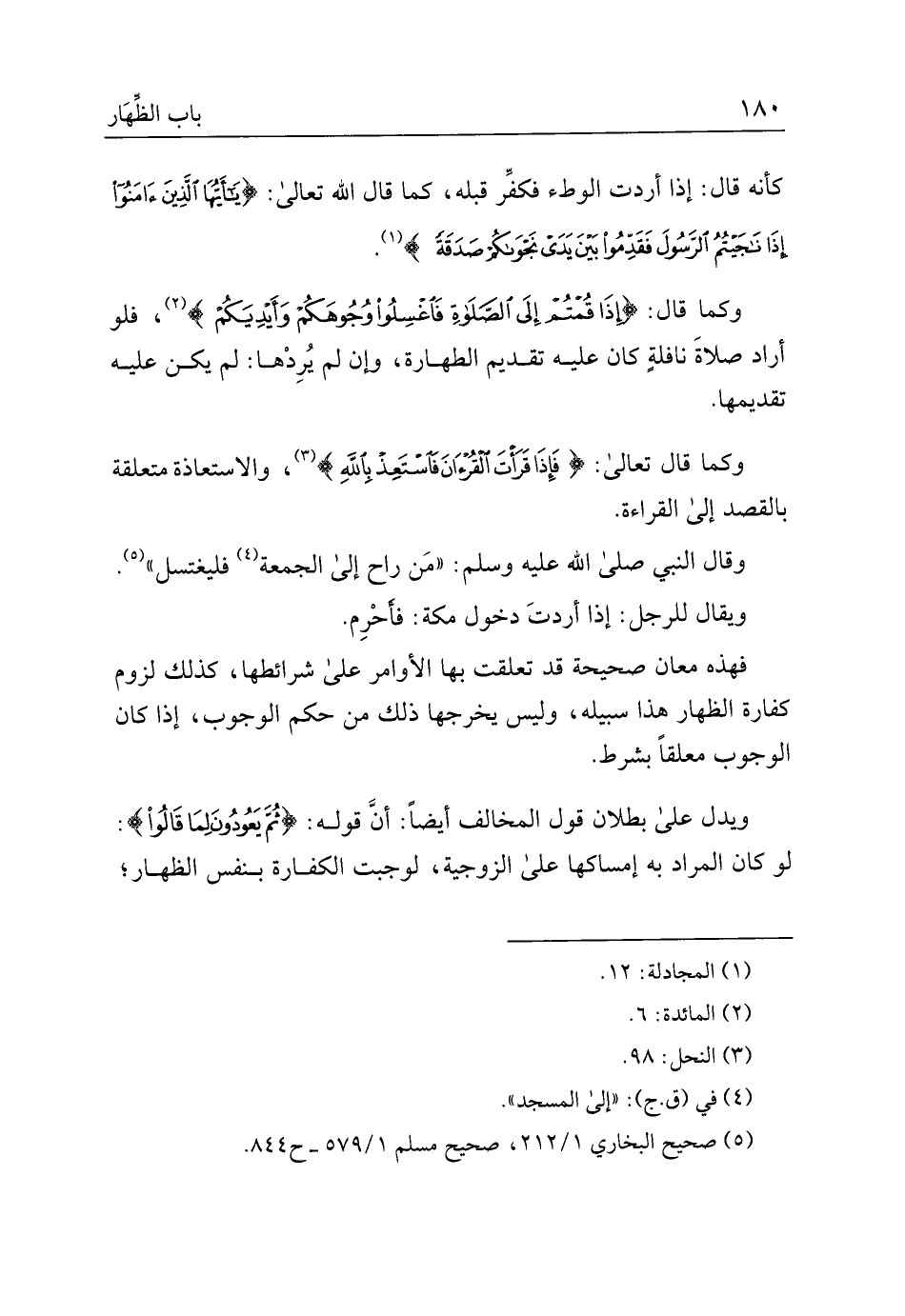 وكما قال: {إذا قمتم إلى الصلاة فاغسلوا وجوهكم وأيديكم}، فلو أراد صلاة نافلة كان عليه تقديم الطهارة، وإن لم يردها: لم يكن عليه تقديمها.