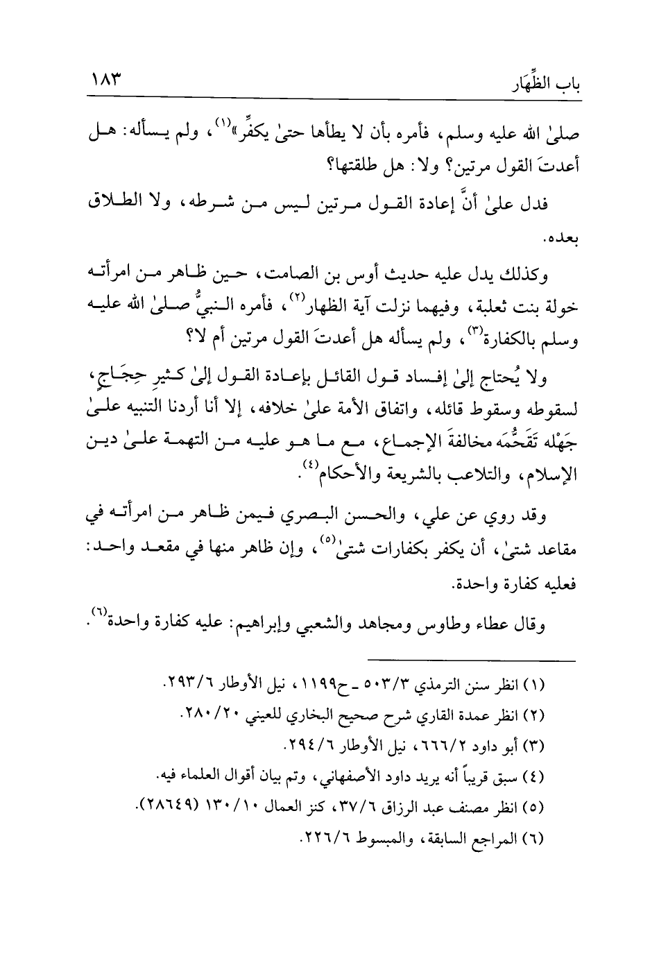 صلى الله عليه وسلم، فأمره بأن لا يطأها حتى يكفر"، ولم يسأله: هل أعدت القول مرتين؟ ولا: هل طلقتها؟