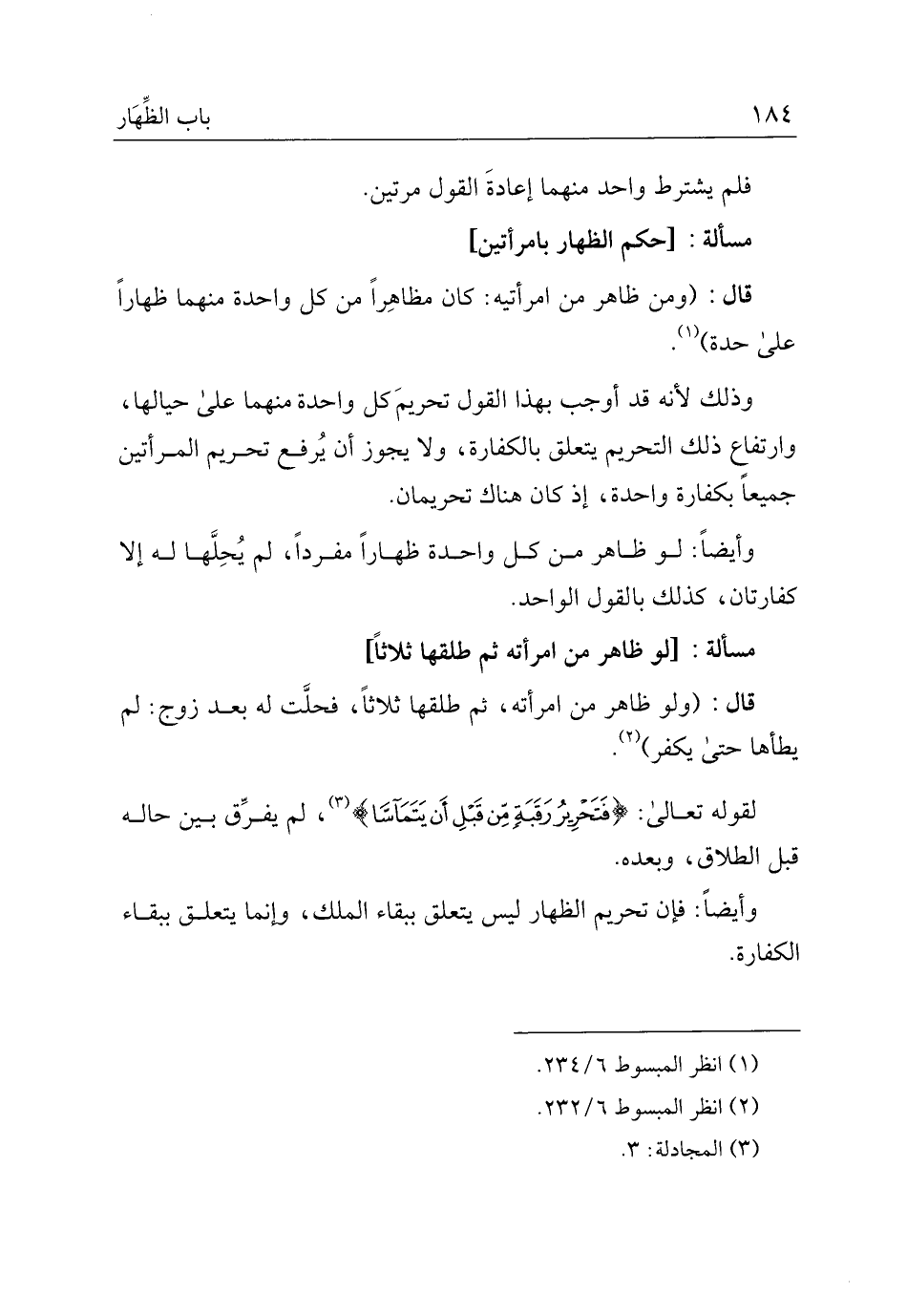 وذلك لأنه قد أوجب بهذا القول تحريم كل واحدة منهما على حيالها، وارتفاع ذلك التحريم يتعلق بالكفارة، ولا يجوز أن يرفع تحريم المرأتين جميعًا بكفارة واحدة، إذ كان هناك تحريمان.