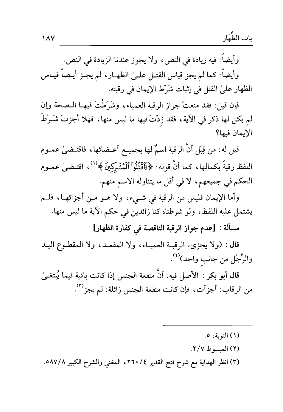 وأيضًا: كما لم يجز قياس القتل على الظهار، لم يجز أيضًا قياس الظهار على القتل في إثبات شرط الإيمان في رقبته.
