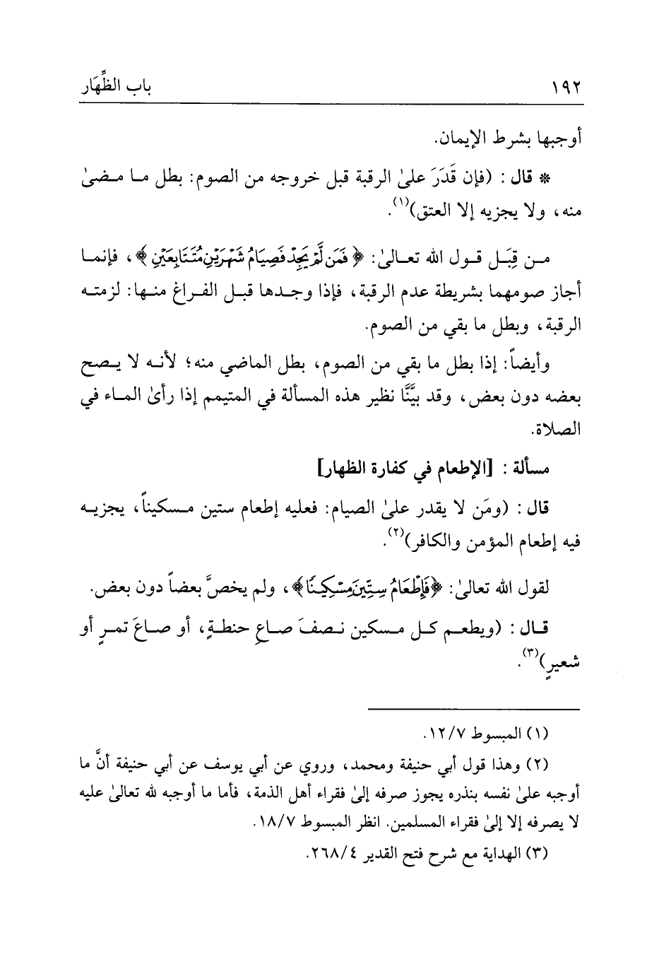 مسألة: [الإطعام في كفارة الظهار]