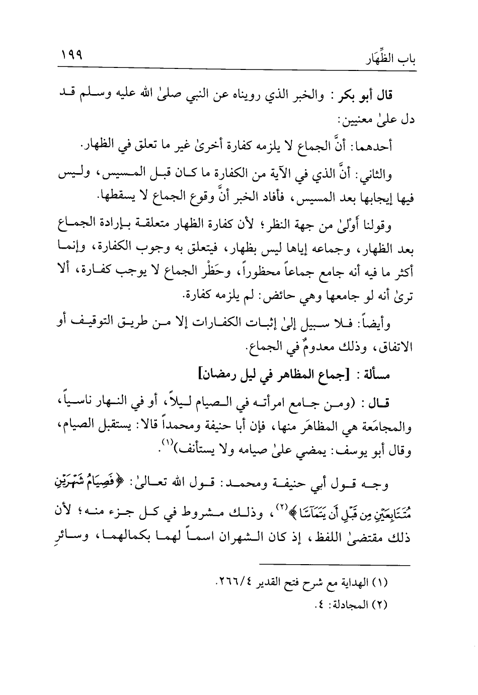 والثاني: أن الذي في الآية من الكفارة ما كان قبل المسيس، وليس فيها إيجابها بعد المسيس، فأفاد الخبر أن وقوع الجماع لا يسقطها.