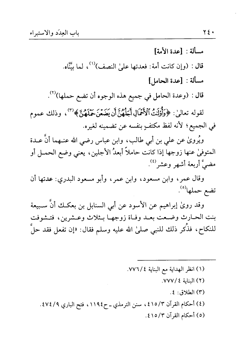 وقال عمر، وابن مسعود، وابن عمر، وأبو مسعود البدري: عدتها أن تضع حملها.