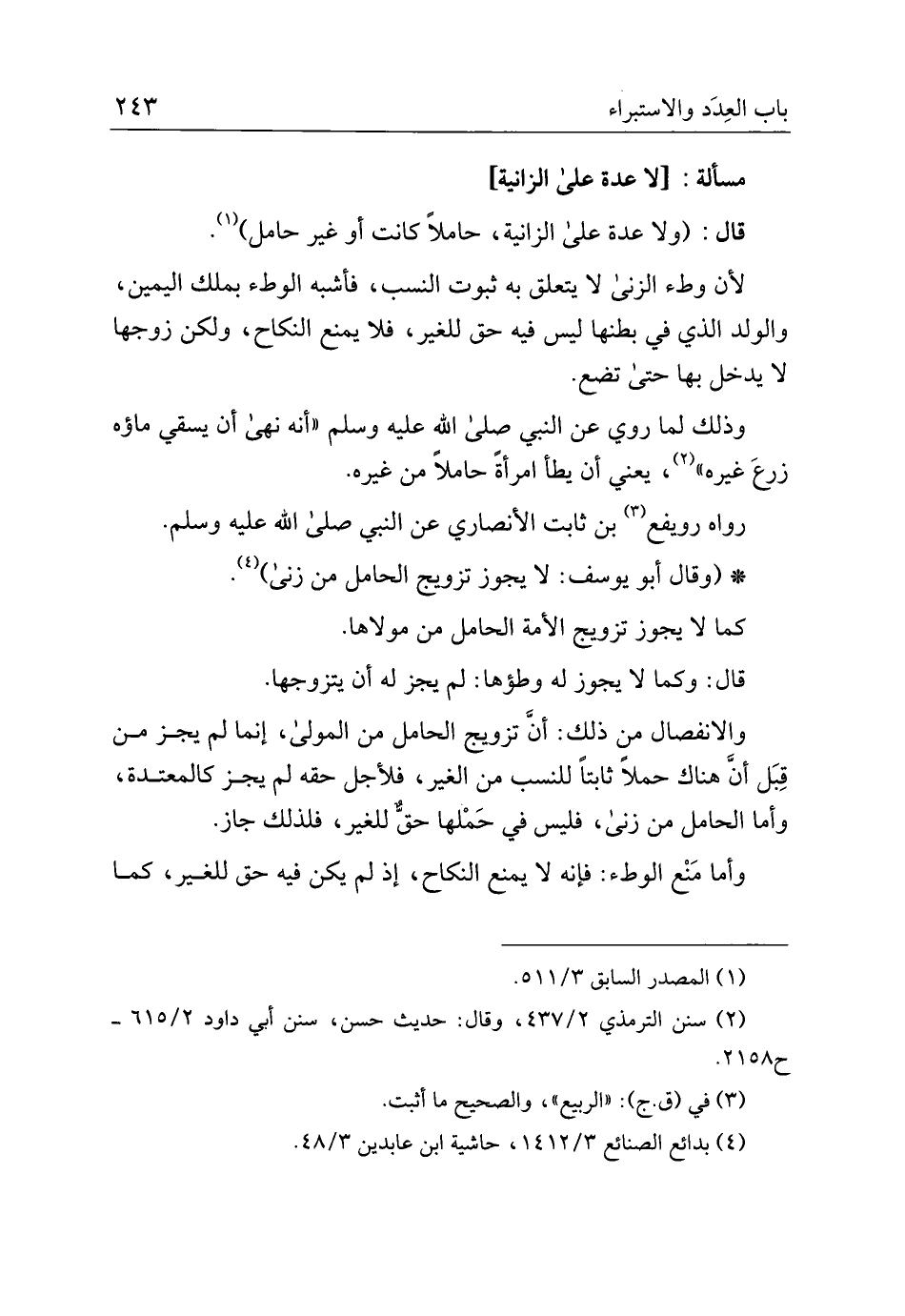 مسألة: [لا عدة على الزانية]