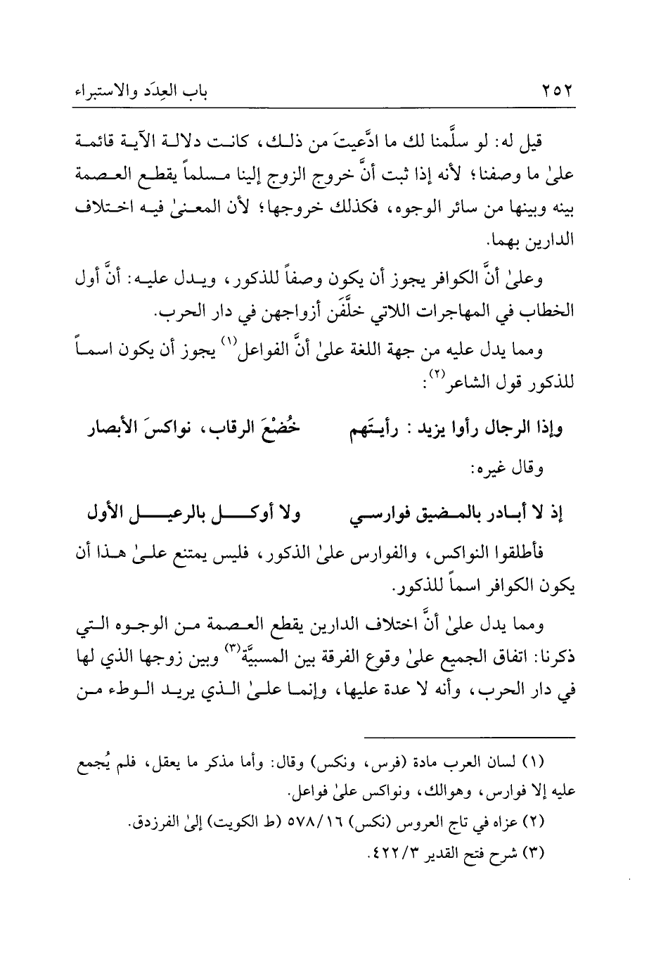 فأطلقوا النواكس، والفوارس على الذكور، فليس يمتنع على هذا أن يكون الكوافر اسمًا للذكور.